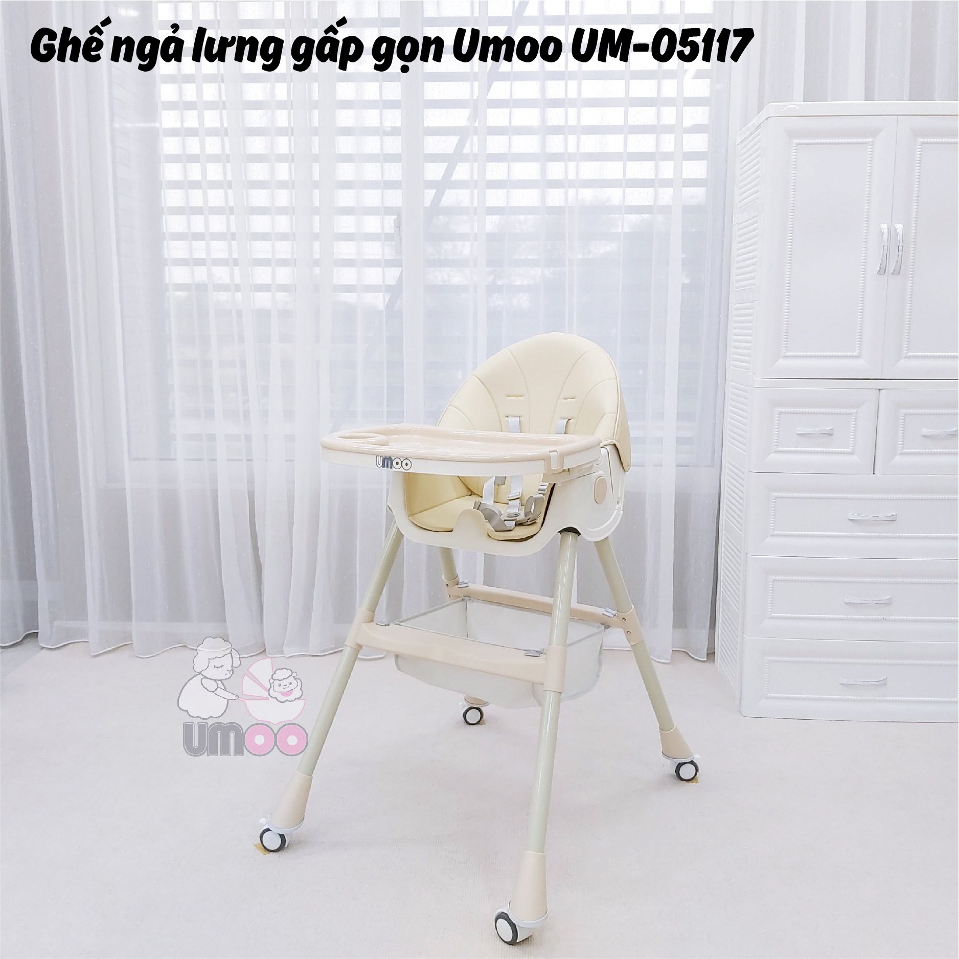 ✨Ghế ngả lưng gấp gọn có bánh Umoo UM-05117 - Mã ghế đa zi năng nhất năm 2022, chấp hết mọi tư thế ăn nghiêng ngả của các siêu quậy nhí