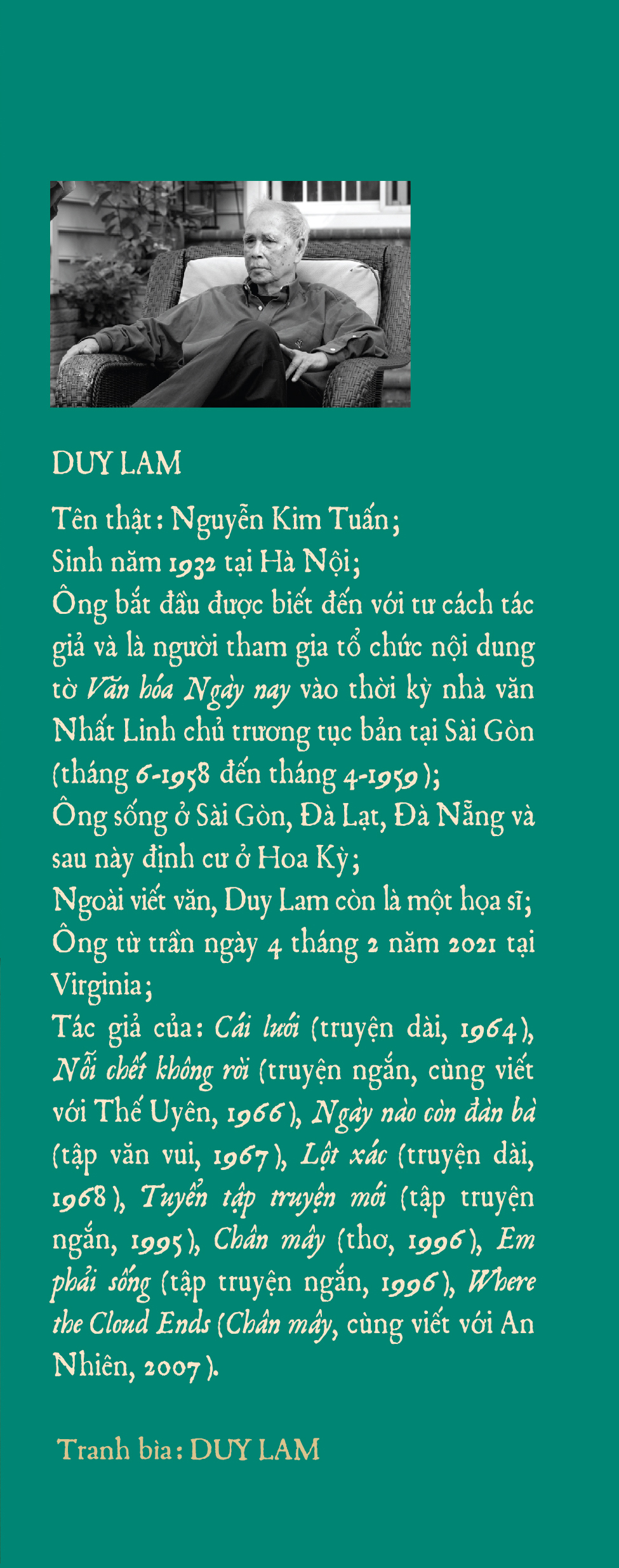THÔNG TIN TÁC GIẢ Duy Lam - tên thật là Nguyễn Kim Tuấn, sinh năm 1932 tại Hà Nội Ông bắt đầu được biết đến với tư cách tác giả và là người tham gia tổ chức nội dung tờ Văn hóa Ngày nay vào thời kỳ nhà văn Nhất Linh chủ trương tục bản tại Sài Gòn ( tháng 6/1958 - 4/1959). Ông sống ở Sài Gòn, Đà Nẵng, Đà Lạt và sau này định cư tại Hoa Kỳ. Ngoài viết văn, Duy Lam còn là một họa sĩ. Tác giả của: