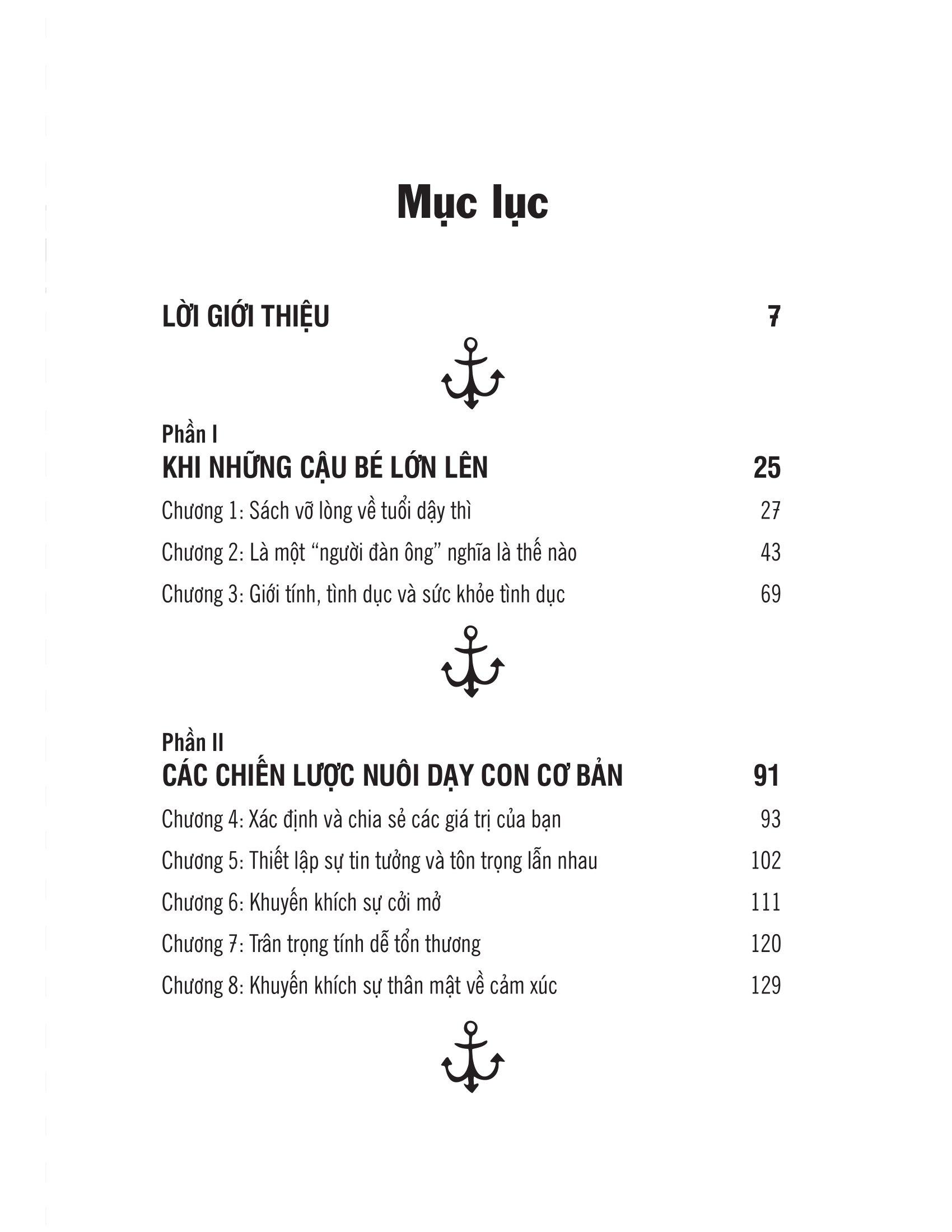 Sách sẽ giúp bạn nhận ra những gì con trai m.ình đang trải qua, hướng dẫn bạn cách có những cuộc trò chuyện cởi mở về mọi thứ, từ tình dục và bản dạng giới đến sự đồng thuận và tình dục an toàn hơn. Ngoài ra, cuốn sách cũng giúp cho phụ huynh có cái nhìn tiến bộ hơn trong suy nghĩ và hành động khi giáo dục giới tính cho trẻ.