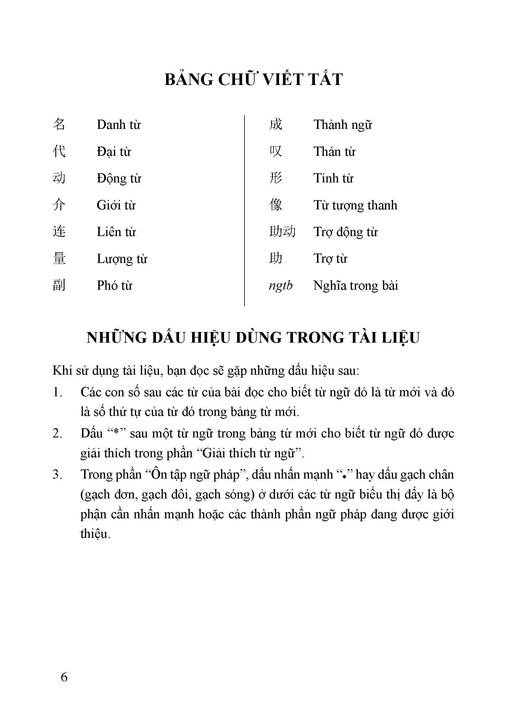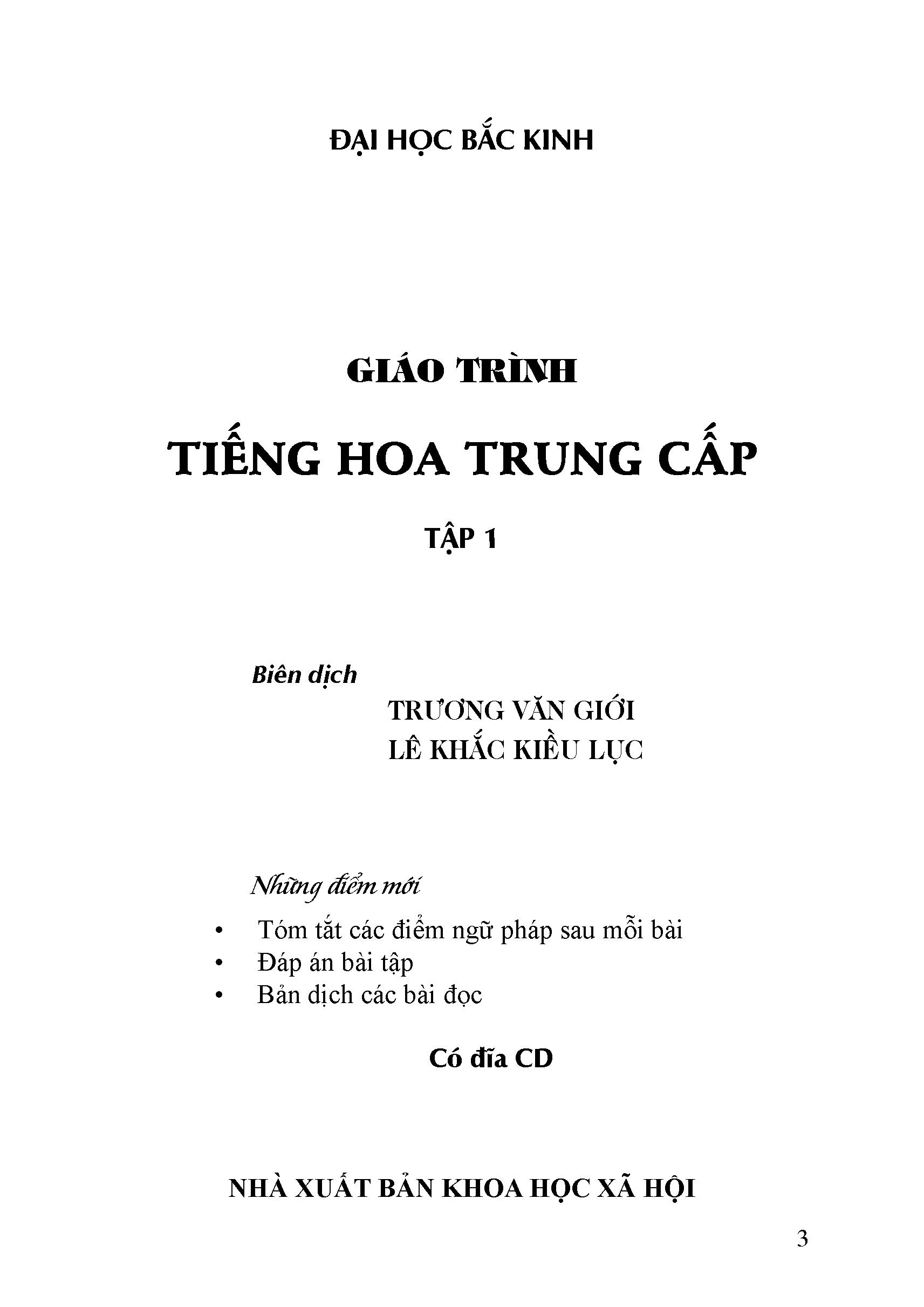 Ngoài ra, để giúp người học củng cố, bổ sung và hệ thống lại các nội dung ngữ pháp đã học trong chương trình sơ trung cấp, khi biên dịch tài liệu này, chúng tôi soạn thêm phần “Ôn tập ngữ pháp” theo hình thức tiểu kết sau mỗi bài. Để người học có thể đối chiếu bài làm, bài dịch của mình, chúng tôi có bổ sung thêm ở cuối sách phần “Đáp án bài tập” và “Bản dịch các bài đọc”. Sách còn có “Bảng từ vựng”, “Bảng danh từ riêng”, “Bảng từ ngữ được giải thích” giúp người học thuận lợi hơn trong việc tra cứu.