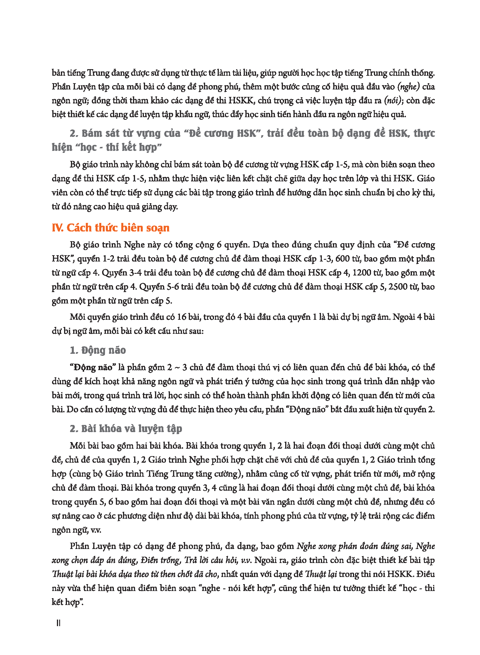 Bộ giáo trình này không chỉ bám sát toàn bộ đề cương từ vựng HSK cấp 1-5, mà còn biên soạn theo dạng đề thi HSK cấp 1-5, nhằm thực hiện việc liên kết chặt chẽ giữa dạy học trên lớp và thi HSK. Giáo viên còn có thể trực tiếp sử dụng các bài tập trong giáo trình để hướng dẫn học sinh chuẩn bị cho kỳ thi, từ đó nâng cao hiệu quả giảng dạy.