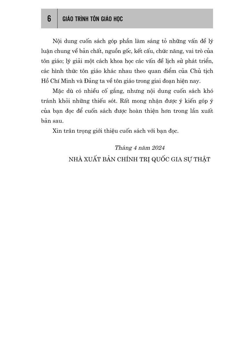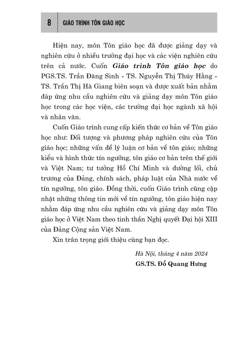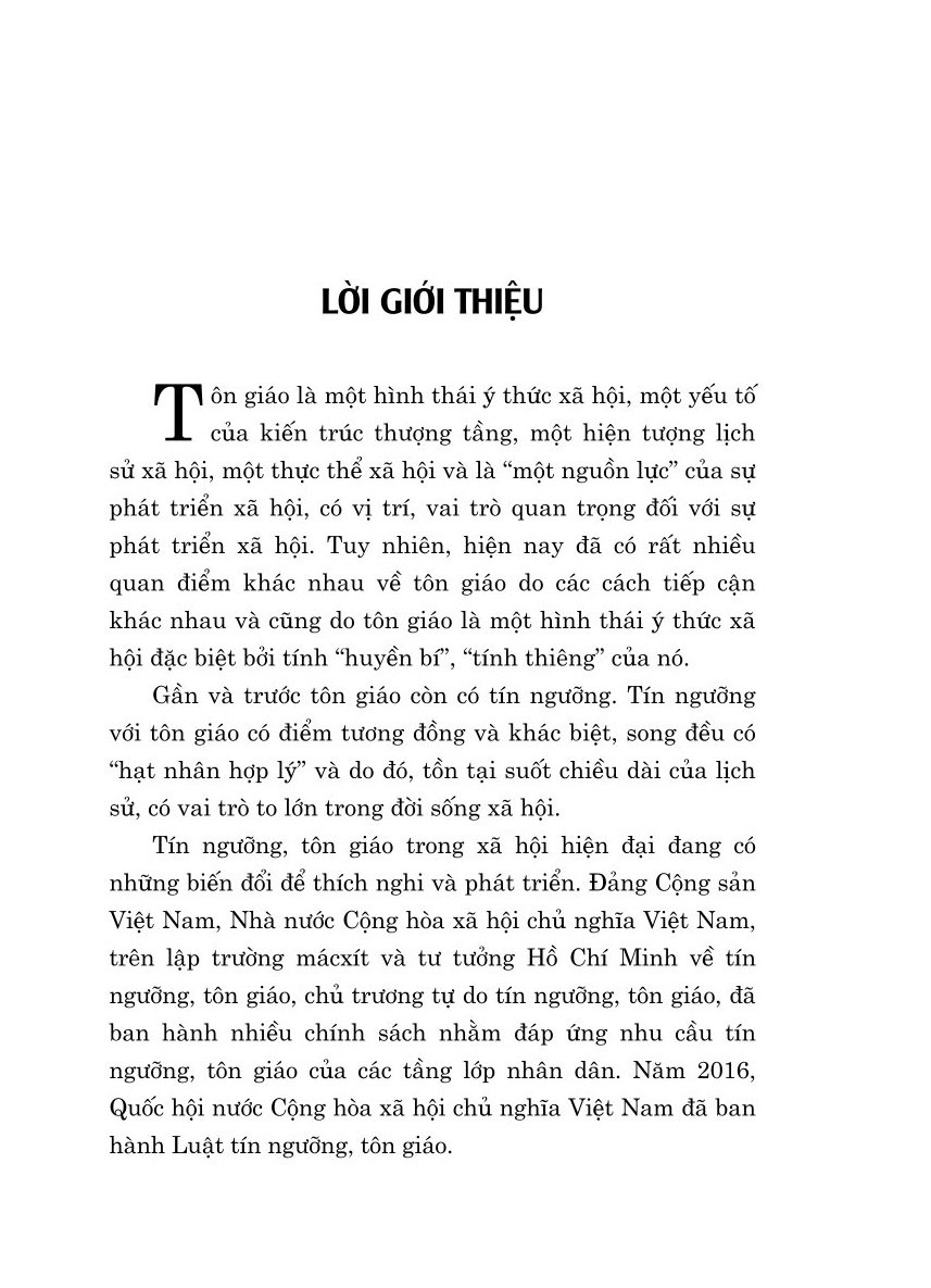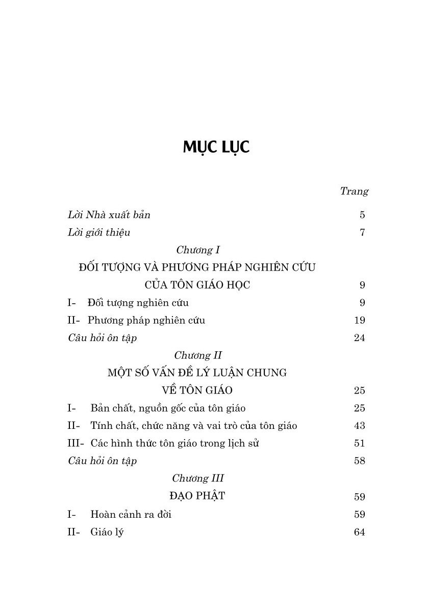 Giới thiệu khái quát về tôn giáo học và một số vấn đề lí luận chung về tôn giáo. Tìm hiểu về đạo Phật, đạo Kitô, đạo Ixlam, một số tín ngưỡng và tôn giáo dân tộc ở Việt Nam. Nội dung tư tưởng Hồ Chí Minh và đường lối, chủ trương của Đảng, chính sách của nhà nước về tôn giáo.