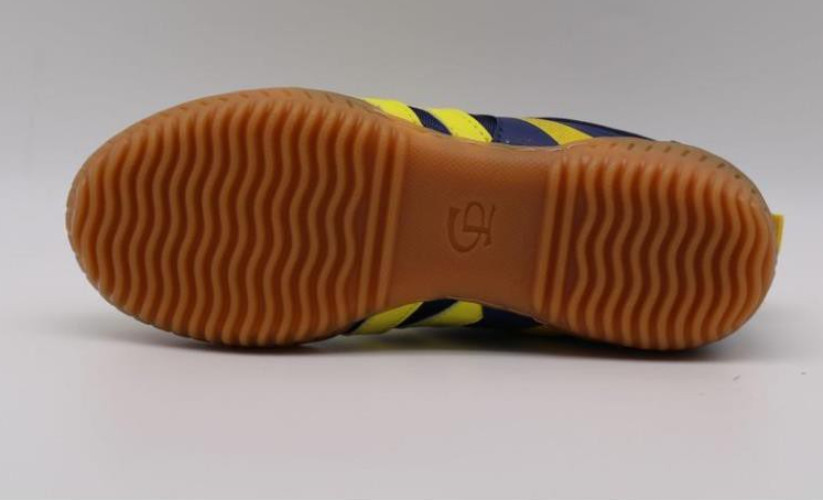✨GIÀY ĐÁ BÓNG FUTSAL VẢI CP004F NAVY SỌC VÀNG MAY FULL ĐẾ
