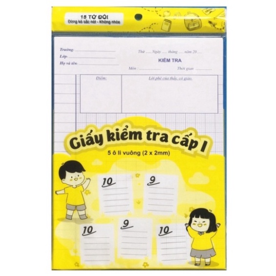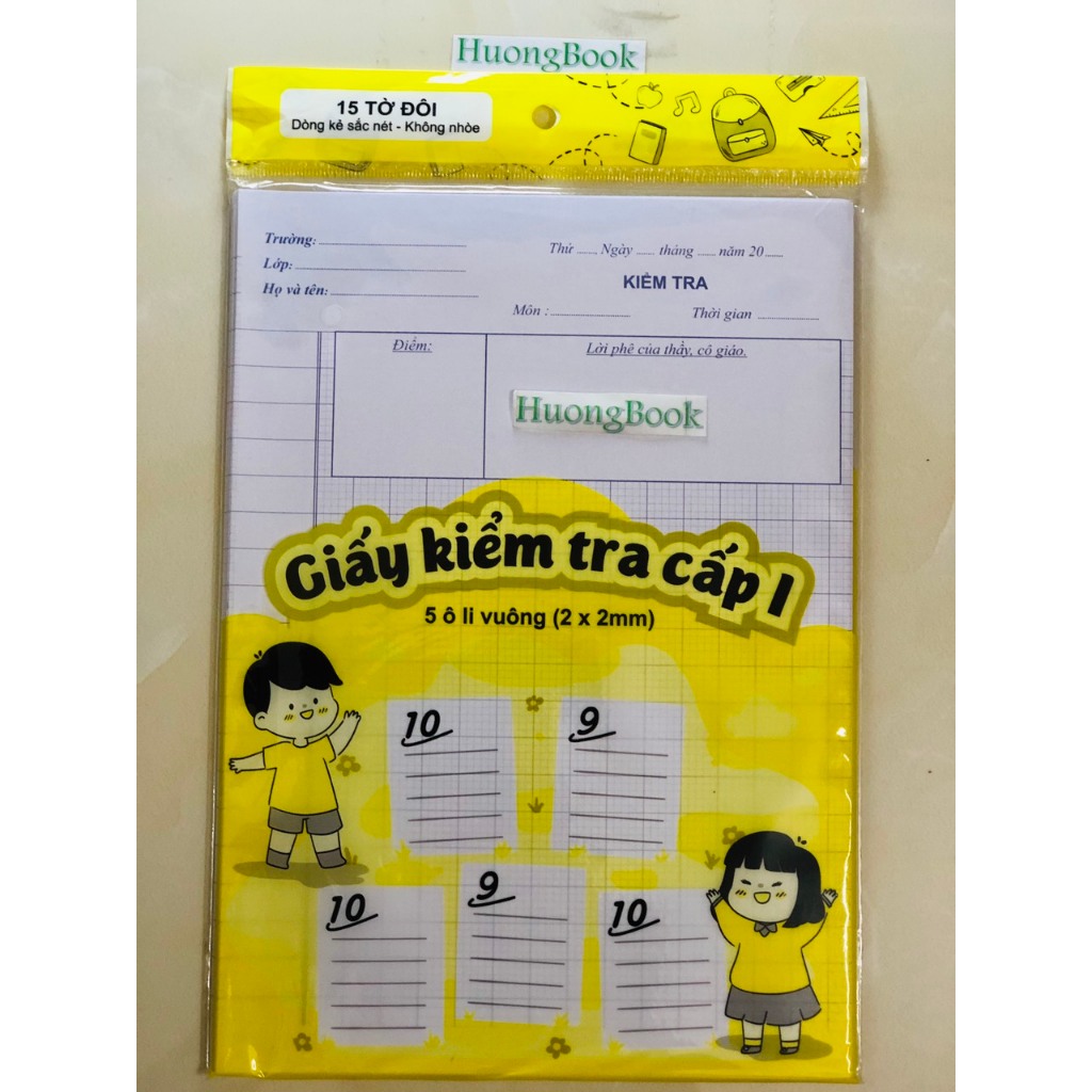 ✨Giấy kiểm tra cấp 1 (5 ô li vuông,15 tờ đôi) ND