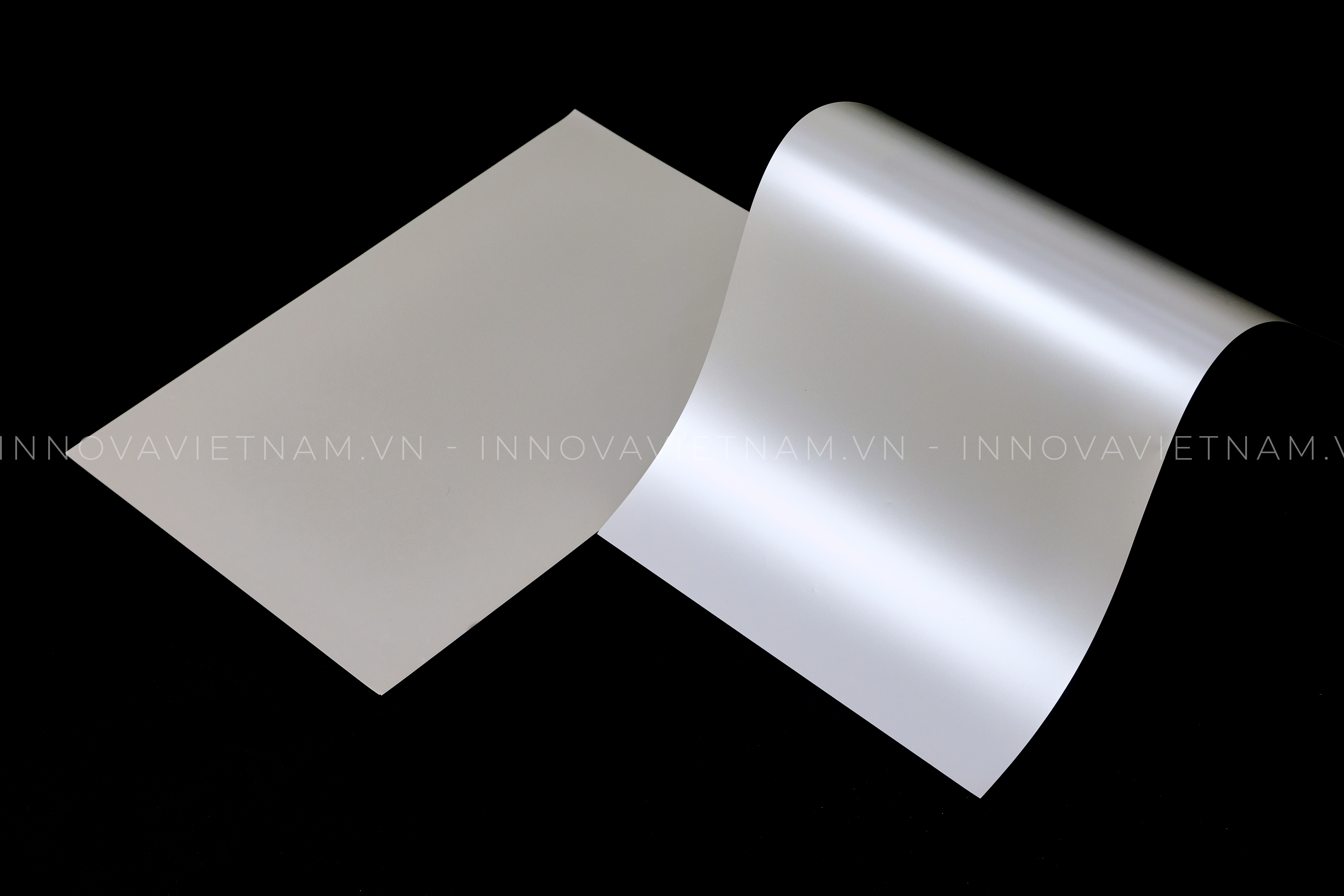 Giấy nhựa ánh ngọc trai là sản phẩm giấy nhựa polyester phủ ánh nhũ giống màu của ngọc trai và được phủ cả hai mặt của sản phẩm. Giấy nhựa ánh ngọc trai mang đến