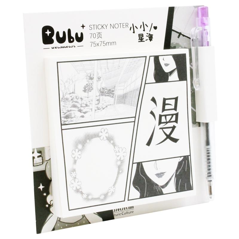 ✨Giấy Note Hình Kèm Bút 75 x 75 mm - Bu Bu BLTP-0341 - Mẫu 1 (70 Tờ)