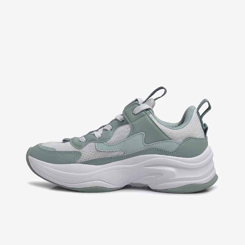 Đế giày - lựa chọn chất liệu Phylon làm nên đế giày thể thao cho các chị em. Vì tính chất nổi bật của vật liệu này là trọng lượng siêu nhẹ (nặng chỉ 300g/chiếc) và độ đàn hồi cao. Nhờ đó, phần lớn khách hàng sử dụng sản phẩm ngay từ lần đầu tiên đều có cảm giác đôi chân “nhẹ như bay”, bước đi thoải mái và thỏa thích vận động ở mọi tư thế theo cách riêng mà không lo đau mỏi chân. - Mặt đế thiết kế thêm những rãnh chống trượt, bố trí dày đặc nhằm tăng độ ma sát. Qua đó giúp người mang vận động thoải mái, bước đi vững chắc và bảo đảm an toàn tối đa, nhất là khi di chuyển trên những địa hình trơn nhẵn hoặc thời tiết ẩm ướt. Thân giày - Thân giày áp dụng công nghệ đan 2 sợi độc đáo. Nhờ vậy, sản phẩm vô cùng nhẹ và thoáng, mang lại cảm giác thoải mái nhất có thể cho người sử dụng. Không những vậy, công nghệ đan 2 sợi còn bảo đảm độ bền chặt của từng chi tiết như cổ giày, quai giày, dây giày… giữ đúng form dáng lâu dài, ít biến dạng hoặc giãn sau một thời gian sử dụng. - Bên cạnh đó, thiết kế thân giày được cải tiến mạnh mẽ bằng chất liệu vải canva, bảo đảm cảm giác thoải mái nhất có thể và hạn chế nóng bức, bí bách nếu phải mang giày trong thời gian dài. -