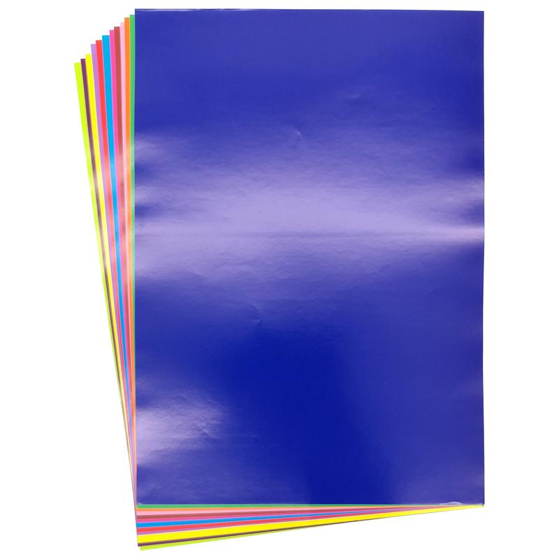 Giấy thủ công có bề mặt bóng, mịn màu sắc sinh động gồm 12 màu chủ đạo: đỏ, vàng, hồng, tím, xanh lá, cam, xanh dương đáp ứng tối đa nhu cầu sáng tạo.