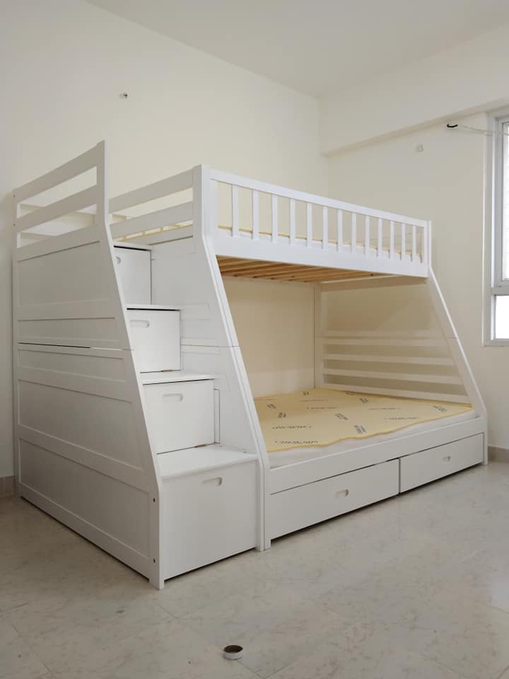 Giường được sản xuất bằng gỗ thông được nhập khẩu 100% từ New Zealand đã qua xử lý chống cong vênh, mối mọt và chống hút ẩm. Đặc biệt giường được thiết kế 2 ngăn kéo ở dưới và 3 hộc ở cầu thang giúp chúng ta có nhiều không gian hơn để cất giữ đồ dùng. Và 1 điều nữa với hệ thống lan can xung quanh sẽ nâng cao độ an toàn khi sủ dụng, cầu thang có thể di chuyển được sẽ rất tiện lợi đúng không nào còn chần chừ gì nữa hãy trải nghiệm những điều tuyệt với nhất của chiếc giường GT292 mang lại nào.