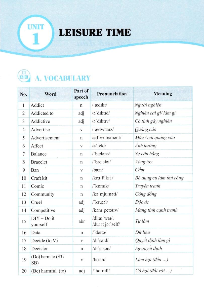 PART A: VOCABULARY (Từ vựng theo từng đơn vị bài học)