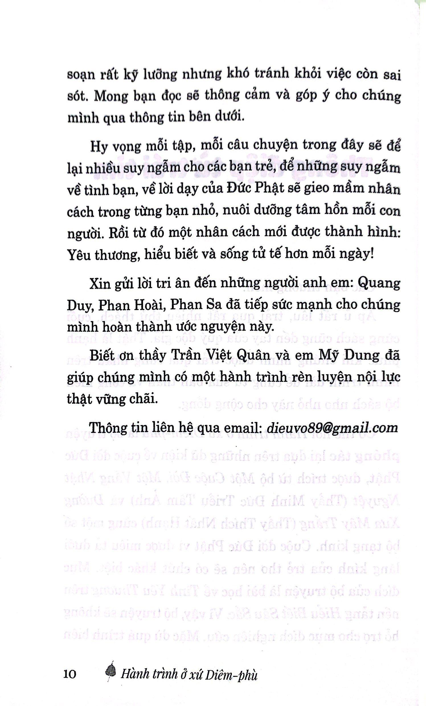 Đội ngũ tác giả hy vọng, với bộ truyện “Hành trình ở xứ Diêm – phù” các bạn nhỏ sẽ có thể được tiếp cận những bài học của vị thầy lớn một cách tự nhiên, trong sáng. Từ đó, những hạt giống trí tuệ, nghị lực và yêu thương đúng đắn trong các em được nuôi dưỡng và nở hoa.