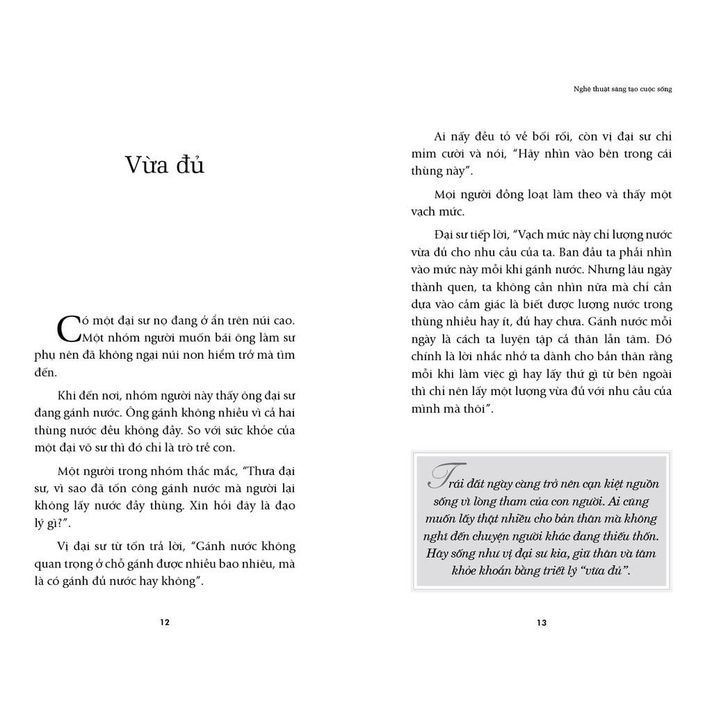 Tập sách “Nghệ thuật sáng tạo cuộc sống” gồm 77 câu chuyện ngắn gọn nhưng sâu sắc về cuộc đời. Mỗi câu chuyện là một bài học được đúc kết qua những trải nghiệm quý giá từ nhiều thế hệ và các nền văn hóa khác nhau. Điểm chung của những câu chuyện này là cái nhìn toàn diện và sâu sắc về cuộc đời, về bản chất các mối quan hệ giữa con người với con người.