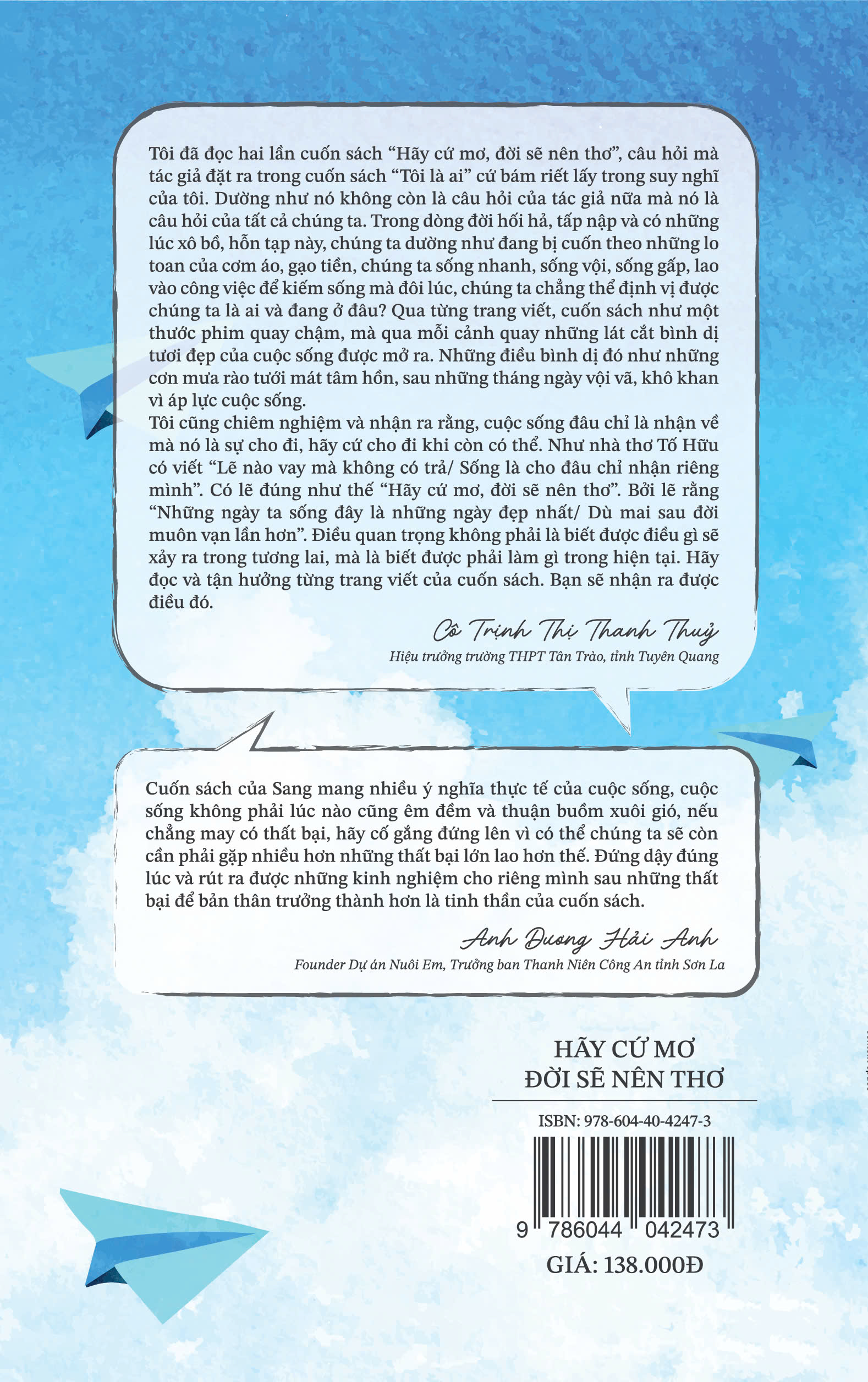 “Hãy cứ mơ, đời sẽ nên thơ” không chỉ là một cuốn sách mà còn là một hành trình để khám phá vẻ đẹp của sự tưởng tượng và lòng tin vào khả năng của bản thân. Trên trang sách này, chúng tôi không chỉ chia sẻ câu chuyện, trải nghiệm và bài học từ những người đã dũng cảm bước ra khỏi ranh giới của thực tế, mà còn cung cấp cho bạn những công cụ và kỹ thuật để thúc đẩy sự sáng tạo, đổi mới trong cuộc sống hàng ngày của bạn.
