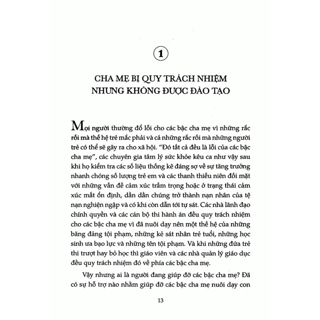 Một đứa trẻ muốn bơi, nó phải mất công tập luyện nhiều tháng trời. Một người trưởng thành muốn tập lái ô tô họ cũng phải học lý thuyết và thực hành nhiều buổi. Thế nhưng mỗi năm có hàng triệu đàn ông và phụ nữ nhận nhiệm vụ cực kỳ khó khăn và mất nhiều công sức là làm cha mẹ – chịu trách nhiệm hoàn toàn về tâm sinh lý của đứa bé sơ sinh và nuôi dạy nó thành người – có bao nhiêu người được đào tạo cho công việc đó?