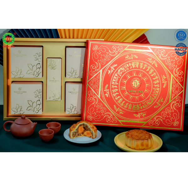 Hộp bánh trung thu 4 bánh 2 trứng 270g - Thịnh Vượng - Thành Long 1080g - tặng 1 hộp trà