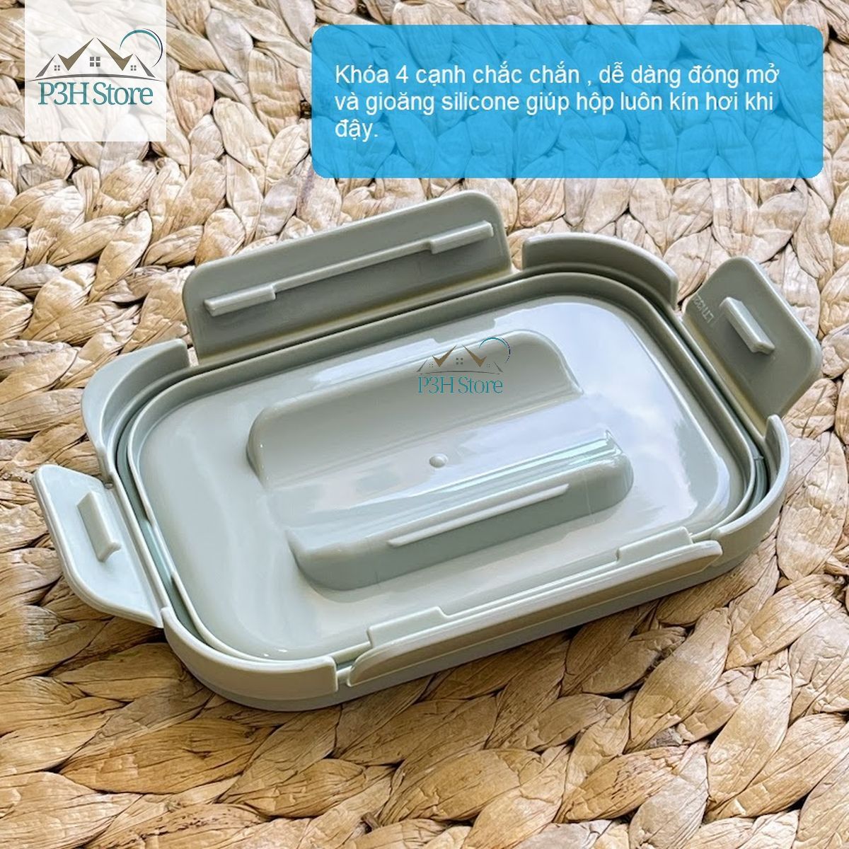 - Phần nắp được gắn chặt vào thành hộp, giúp thức ăn không bị đổ hay tràn ra bên ngoài.