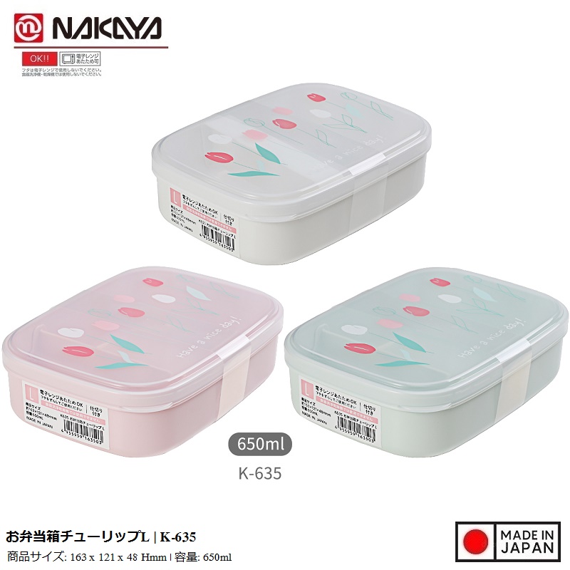 Hộp Cơm chia ngăn Nakaya Bento Tulip size L 650ml thích hợp dùng trong lò vi sóng - Nhập khẩu từ Nhật Bản.