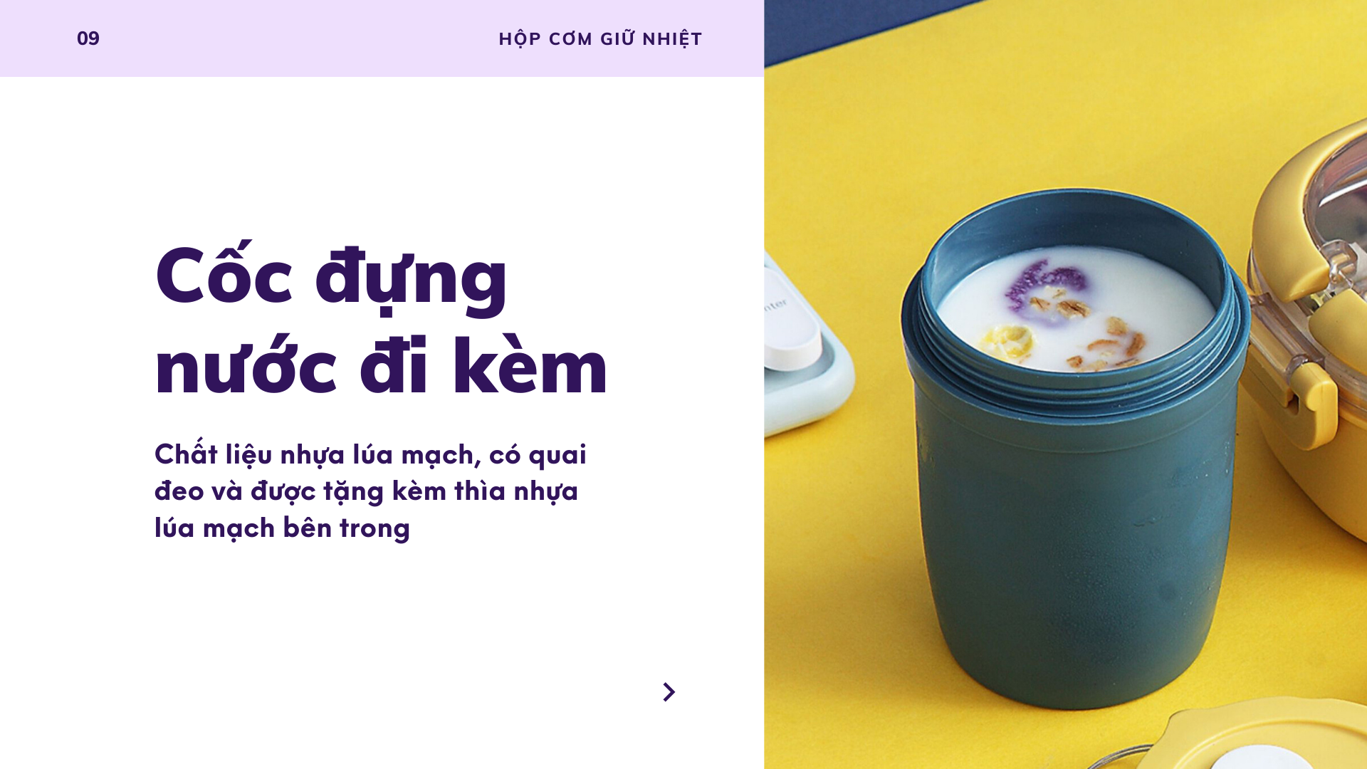 MÔ TẢ SẢN PHẨM Gồm 4 ngăn: Ngăn đựng cơm 0,6L: đựng được 3 chén cơm 2 Ngăn chứa thức ăn 0,3L, Ngăn đựng canh 0,27L Vỏ ngoài của hộp đựng cơm được thiết kế