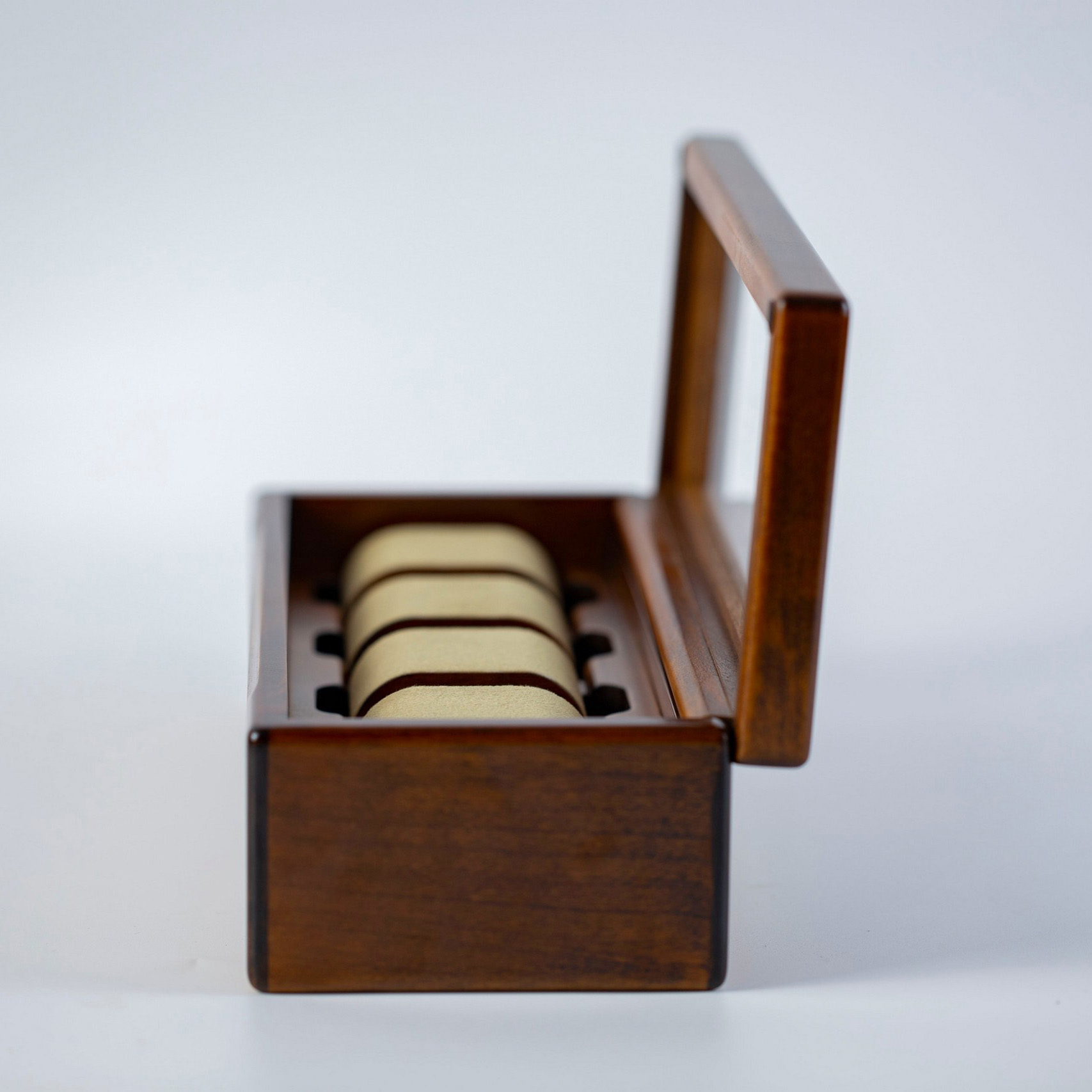 Sau khi tháo đồng hồ ra, người dùng dễ dàng cài đồng hồ đeo tay vào chiếc gối gỗ bọc vải mịn và đặt vào lòng hộp để bao quản đồng hồ một cách trang nhã.