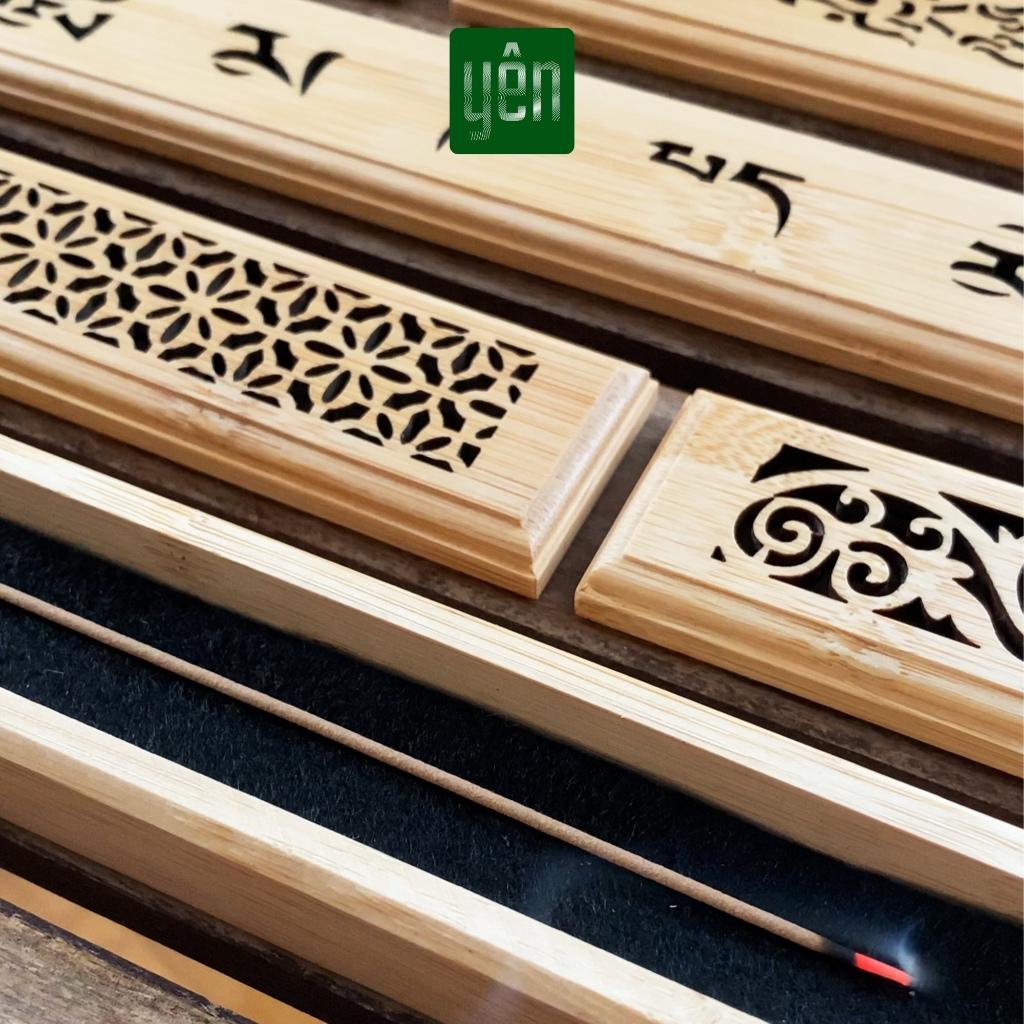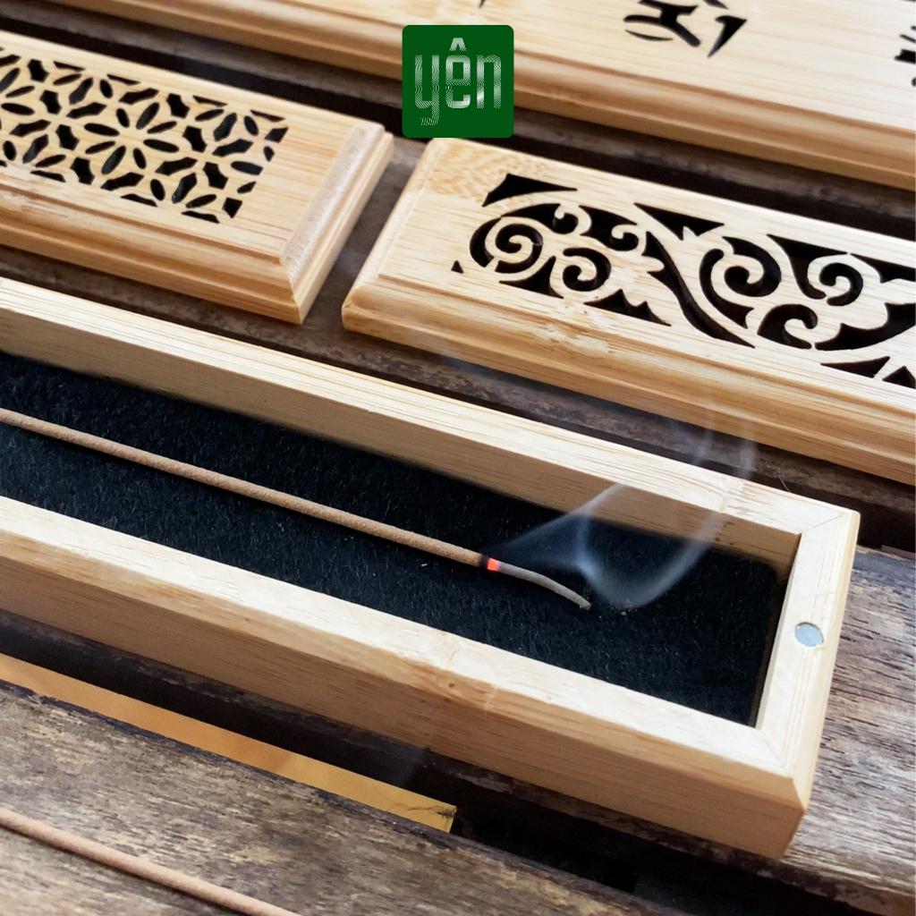 Hộp đốt nhang không tăm bằng tre với nhiều họa tiết cực đẹp mắt, phù hợp để sử dụng với các loại nhang không tăm và trang trí không gian thư giãn, phòng ngủ bàn thờ