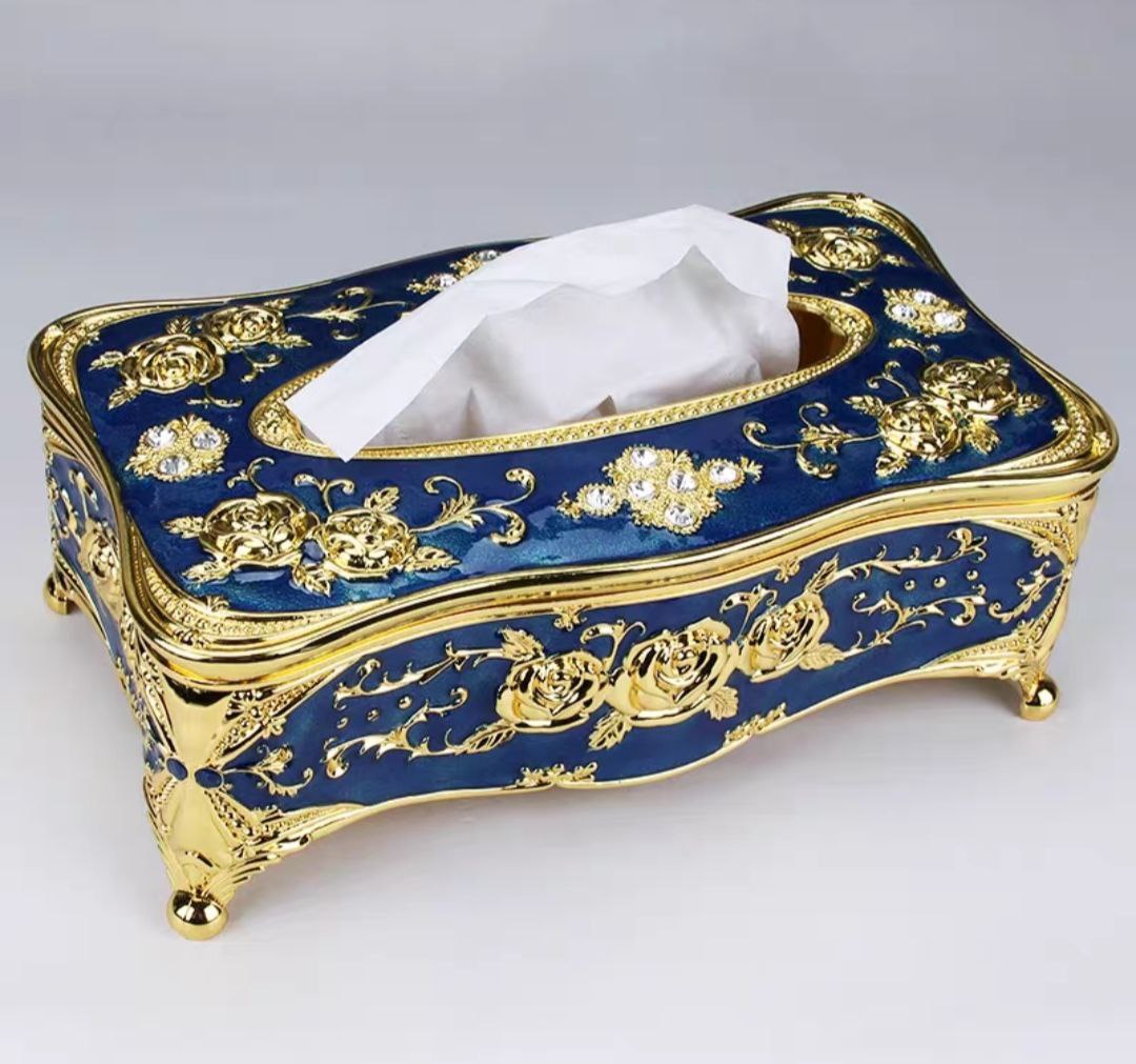 - Hộp đựng giấy ăn được trang trí hoa văn tinh xảo mang tính nghệ thuật cao mang phong cách cổ điển Châu Âu.