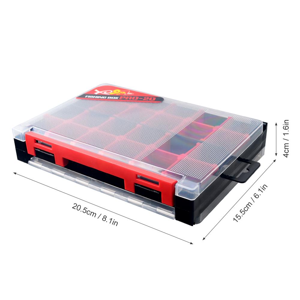 Double-sided fishing box helps keep your fishing accessories organized. Features: High-strength plastic material for durability. Double sided design keep your fishing accessories organized. Clear lids make the contents visible. Built-in drainage holes keep the box