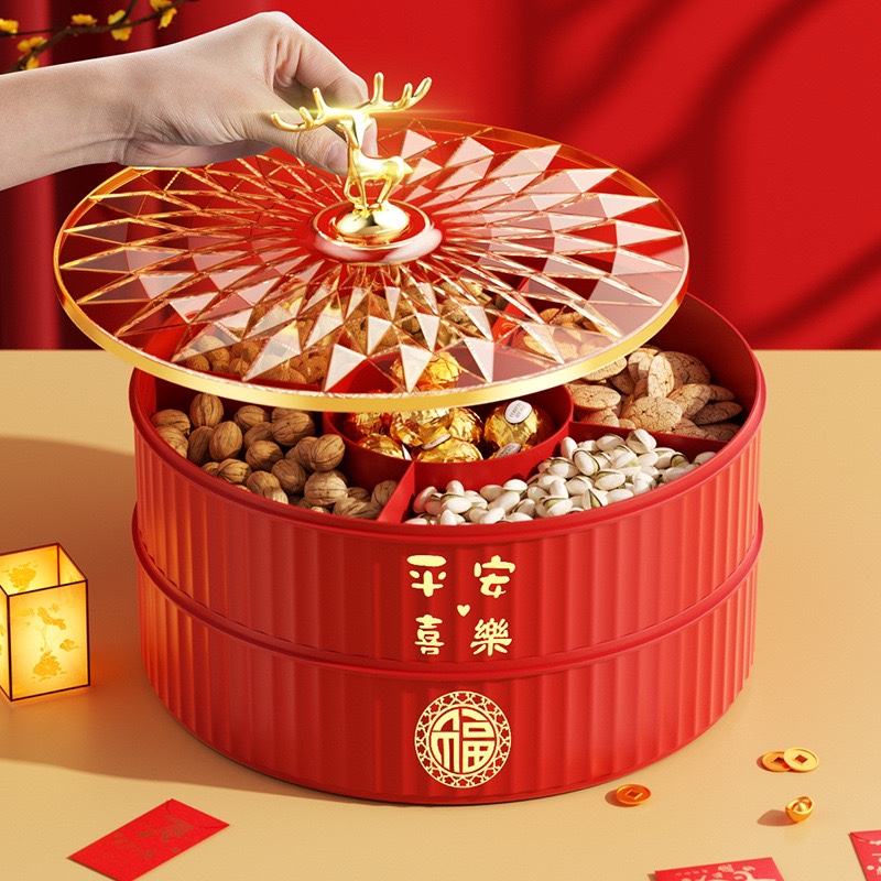 Hộp đựng bánh, kéo, mứt trong dịp Tết là phong tục của người Việt Nam chúng ta. Với thiết kế với tông màu đỏ phù hợp với không khí Tết tràn ngập. Hộp được làm bằng chất liệu nhựa cao cấp.