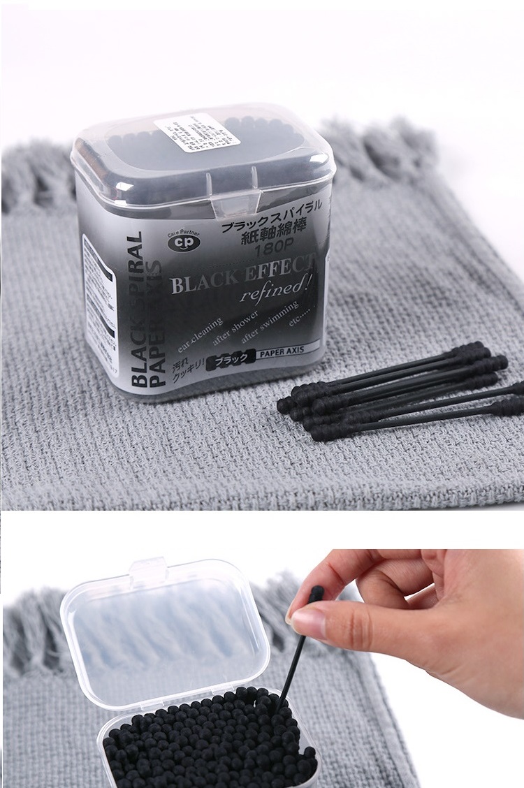 Hộp 150 tăm bông than hoạt tính kháng khuẩn đầu xoắn Ima Krasimo hàng nội địa Nhật Bản ● Kích thước: Hộp: 68x68x80mm ~ Tăm: 75x5x5mm ● Màu sắc: Màu đen / Black ● Ưu điểm: -