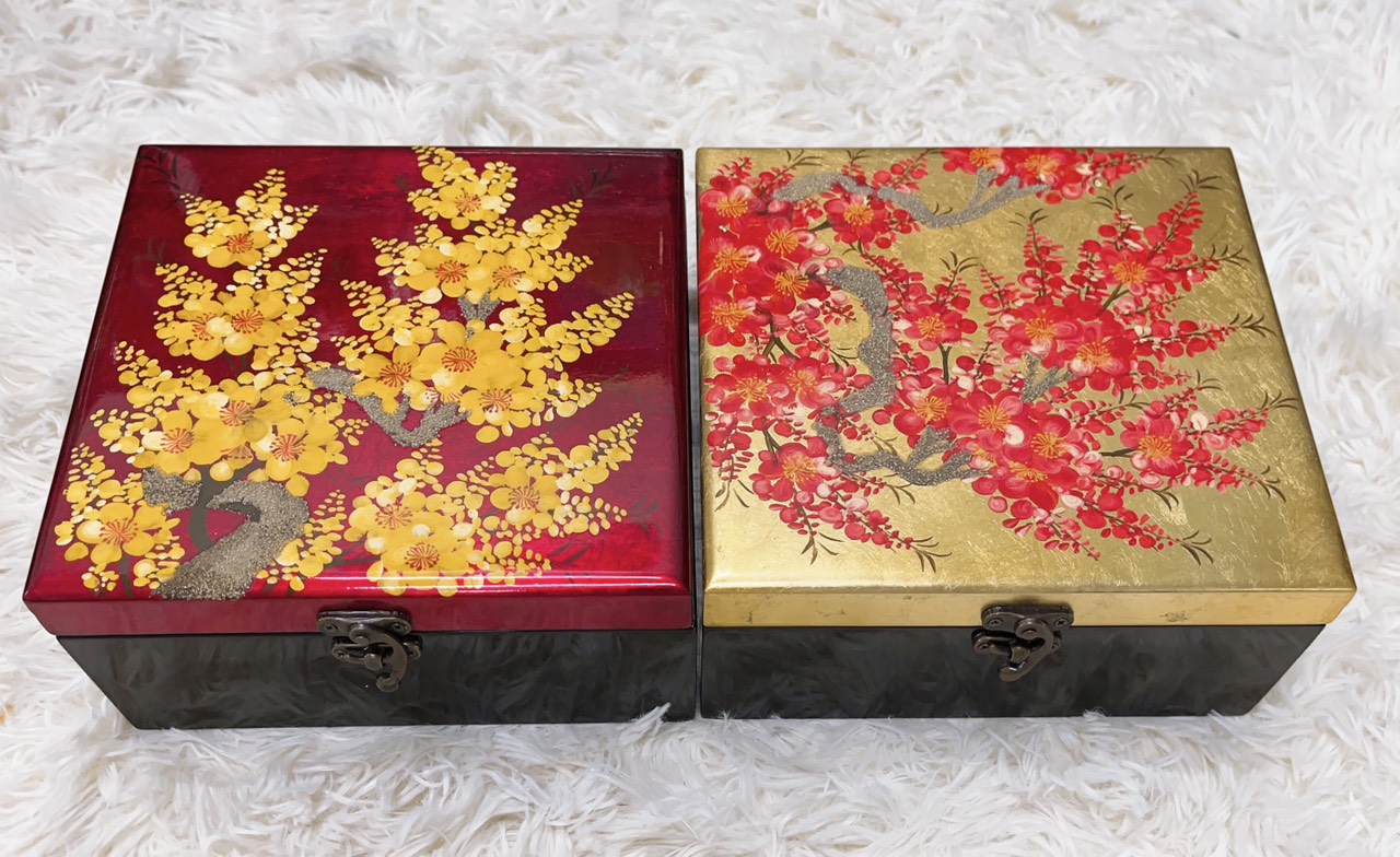 Hộp sơn mài - Hàng thủ công mỹ nghệ Việt Nam được các nghệ nhân tạo hình độc đáo, kết hợp chất liệu gần gũi, quen thuộc và đặc trưng của Việt nam mang đến tính nghệ thuật và thẩm mỹ cao cho tổng thể sản phẩm. Họa tiết được vẽ rồi mài nhiều lần tới khi đạt hiệu quả mà họa sĩ mong muốn. Sau cùng là đánh bóng tranh. Để ra đời một sản phẩm, người thợ phải kiên trì với phương pháp thủ công, thậm chí hàng tháng trời với tất cả sự công phu, cầu kỳ, điêu luyện. ️
