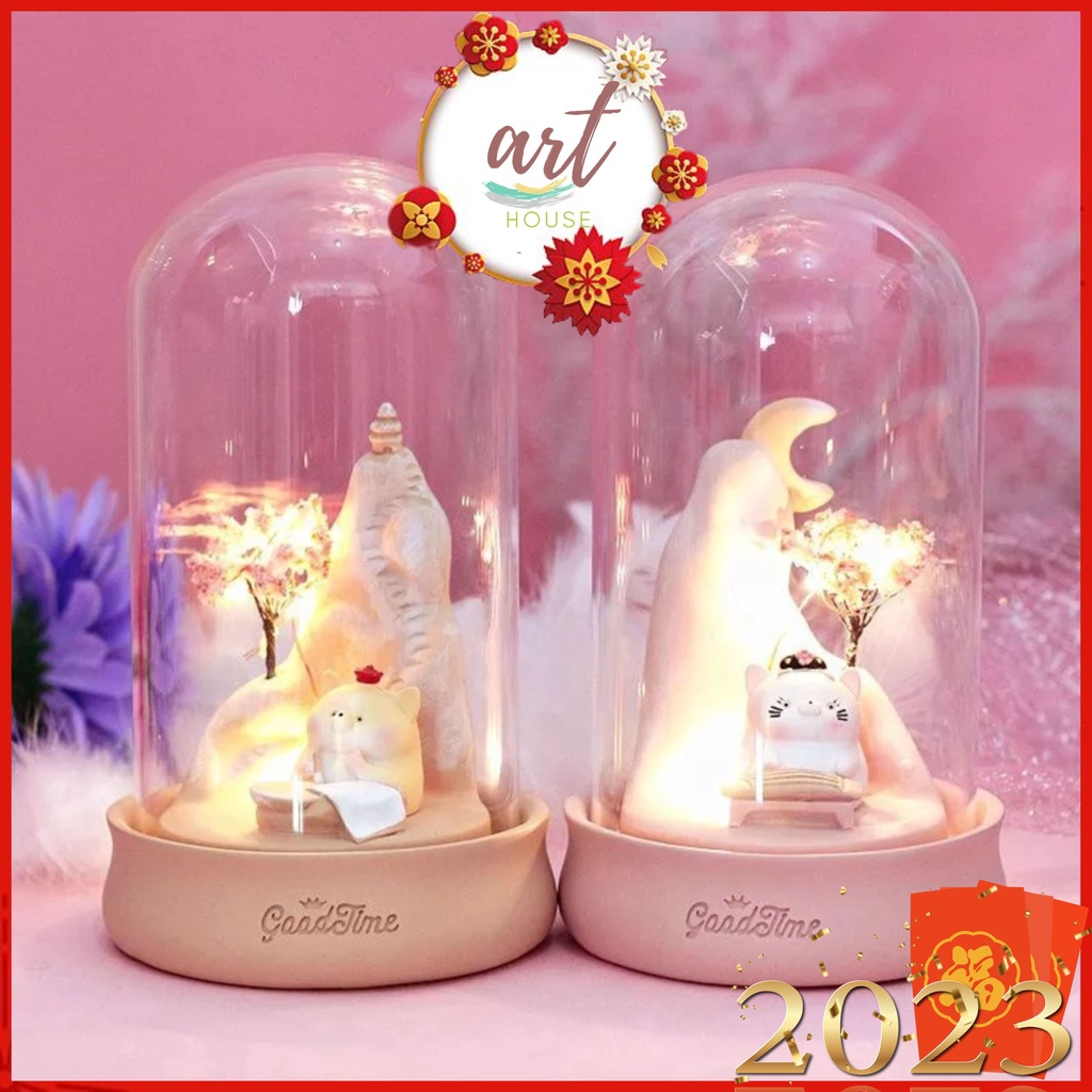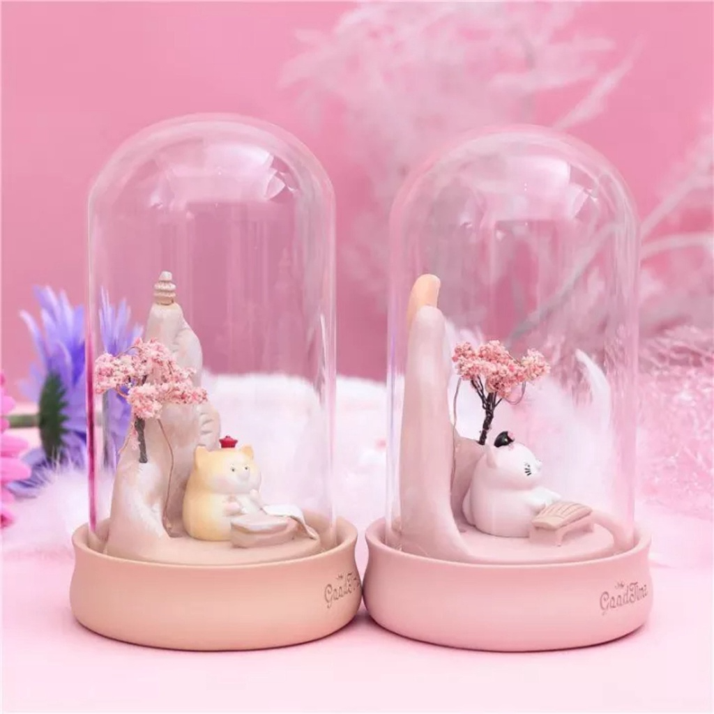 Hộp Trang Trí Mèo Hoàng Gia Trong Lồng Kính Có Đèn - Trang trí nhà cửa - Art House Đèn Mèo Hoàng Thượng Hoàng Hậu Trong Lòng Kính Đèn nhỏ gọn trang trí góc làm
