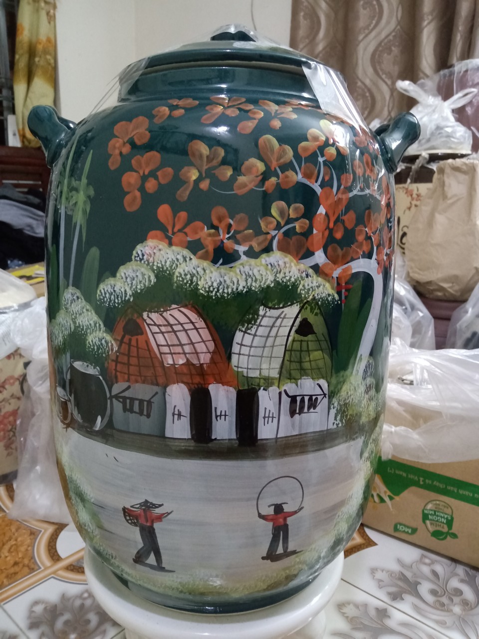 ✨Hũ đựng rượu gạo men xanh vẽ phỏng Bát Tràng loại 30L