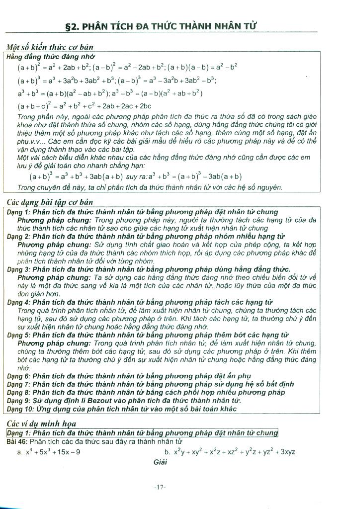 - Câu hỏi trắc nghiệm. Với mỗi dạng bài tập cơ bản đều có phương pháp giải cụ thể và ví dụ minh họa. Ngoài ra, các bài tập đều có hướng dẫn giải chi tiết, dễ hiểu. Nhiều ví dụ có lời nhận xét để giúp học sinh tránh các sai lầm cơ bản. Các bài tập được lựa chọn từ dễ đến khó, có những bài tác giải đã đưa ra nhiều phương pháp khác nhau để bạn đọc tham khảo. Ngoài ra tác giả đã đưa thêm phần: Các bài toán tổng hợp và một số đề thi học sinh giỏi của các tỉnh, thành phố trên toàn quốc, để bạn đọc tham khảo thêm.