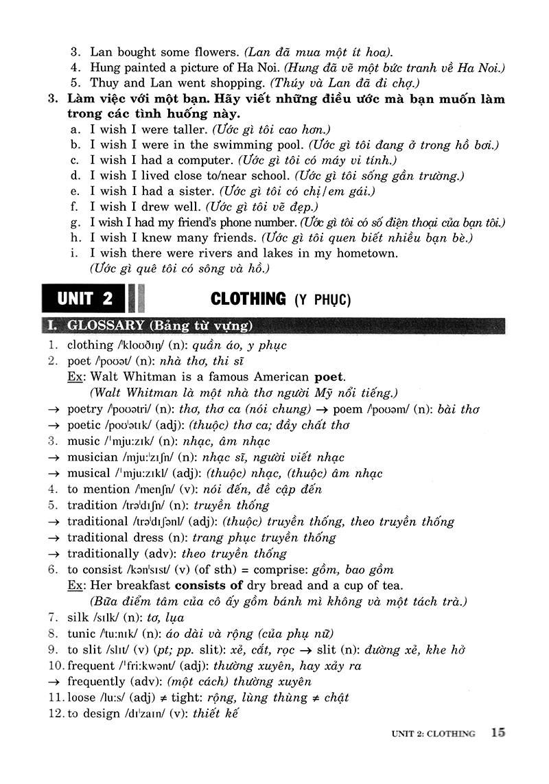 Từ vựng (Glossary) :Gồm tất cả các từ mới trong bài. Các từ đều được phiên âm theo hệ phiên âm quốc tế mới và được định nghĩa sát với nghĩa trong bài học, có ví dụ minh hoa.