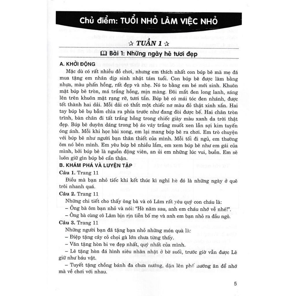 Bộ sách gồm đầy đủ các tuần, bài, chủ điểm với 4 nội dung: Đọc, Luyện từ và câu, Nói và nghe, Viết.