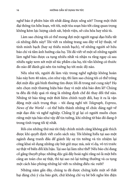 Hướng dẫn sử dụng tin tức: Tin vào đâu trong một thế giới ngập tràn tin giả là một bảng hướng dẫn cho thời đại hoang mang này. Từ AI đến robot, từ khủng hoảng khí hậu đến tin tức giả mạo, từ “mồi câu view” đến “chiêu bài gây sự” (và hơn thế nữa), đây là hướng dẫn tối thượng dành cho người dùng về cách nắm bắt thông tin, phân biệt sự thật và hư cấu, và bắt những người có quyền lực phải chịu trách nhiệm trong thời hiện đại.