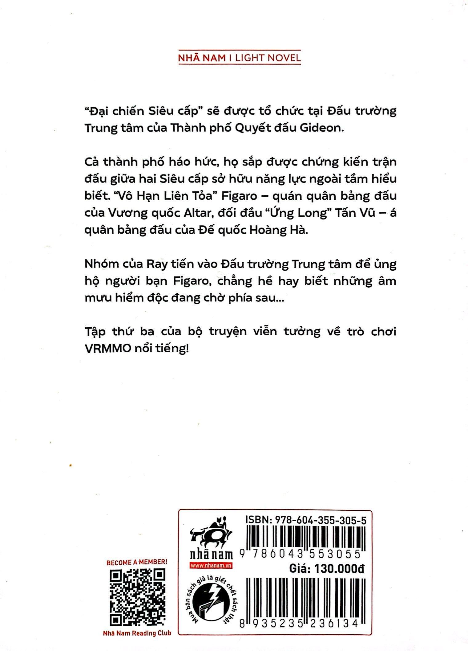Tập ba của Infinite Dendrogram mang đến cho độc giả những màn chiến đấu mãn nhãn tại “Đại chiến Siêu cấp” – một cuộc chiến được tổ chức tại Đấu trường Trung tâm của Thành phố