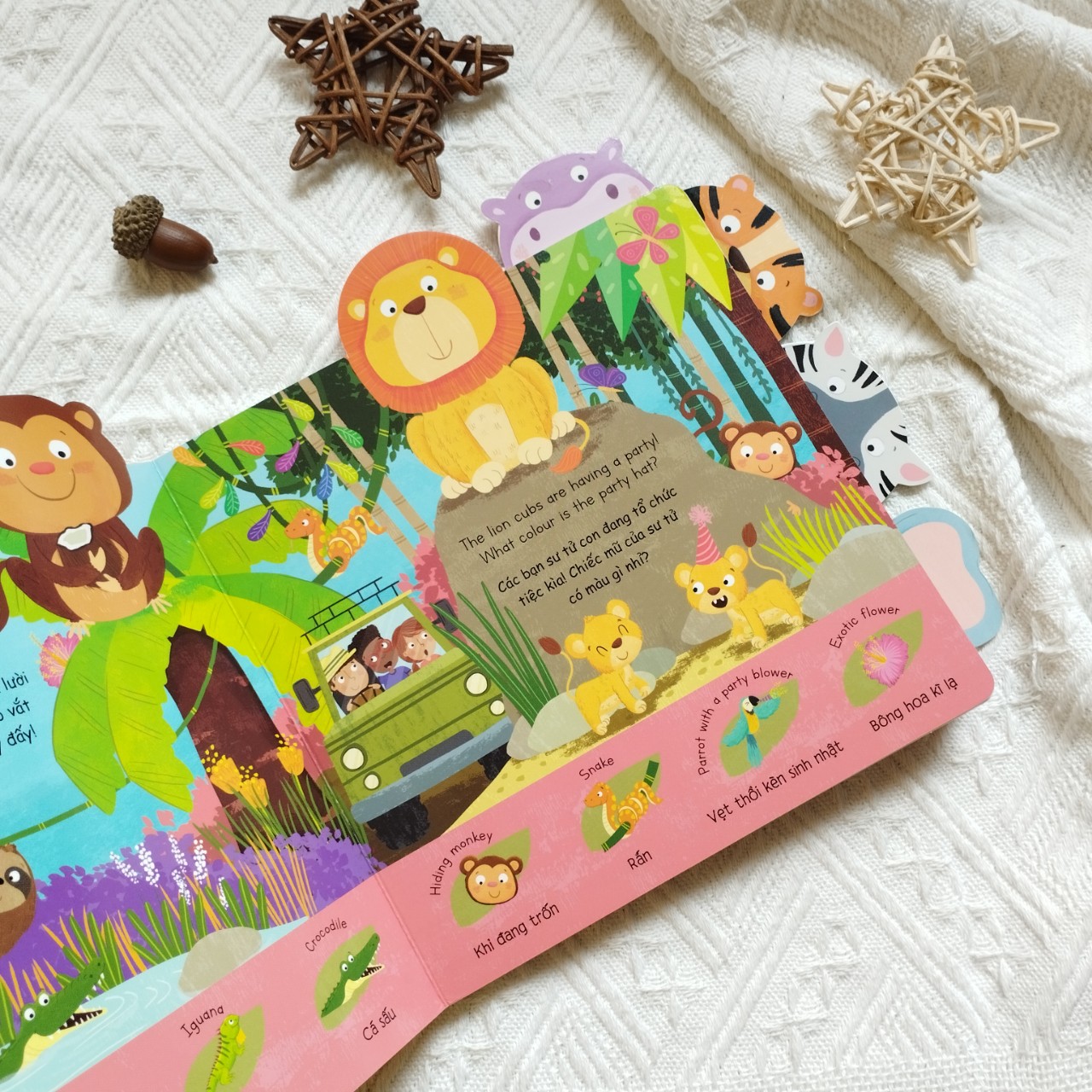 Bé hãy cùng các bạn nhỏ phiêu lưu một chuyến bằng xe cắm trại để khám phá khu rừng nhé! Mỗi trang sách ẩn chưa rất nhiều điều thú vị cho các bé khám phá đấy.