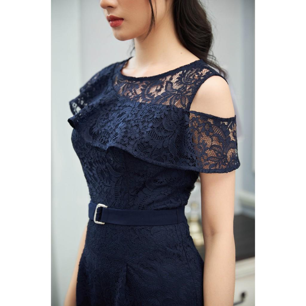 ✨Jumpsuits ren Tri'C Luxury bèo ngực ống suông đai eo Tím than J020820