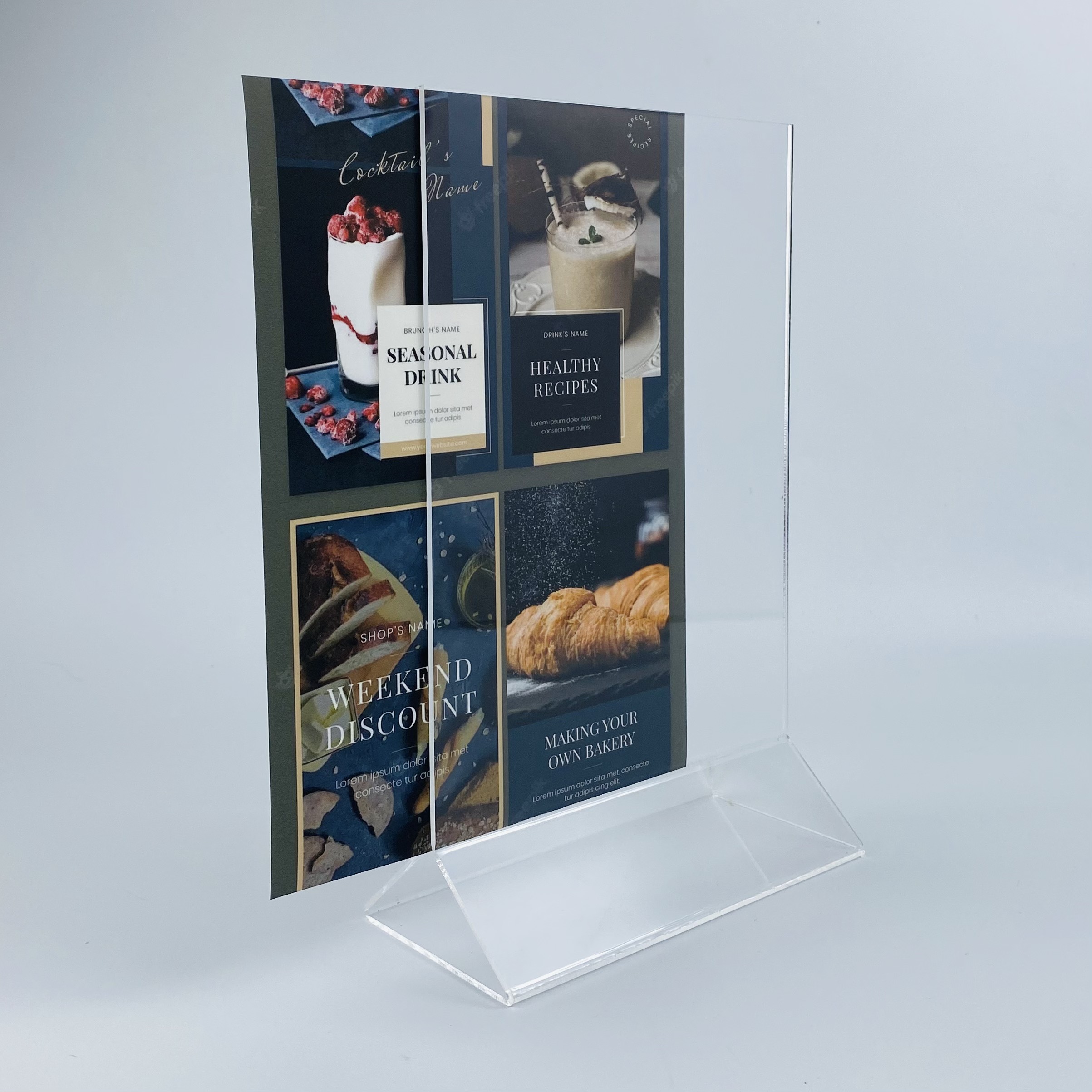 Kệ mica 2 mặt Enter để bàn là sản phẩm làm từ Mica Đài Loan, có công dụng trưng bày thực đơn, hiển thị giá cả sản phẩm tại các nhà hàng, khách sạn... sản phẩm này còn được dùng như một standee để bàn quảng cáo sản phẩm một cách ấn tượng nhất.