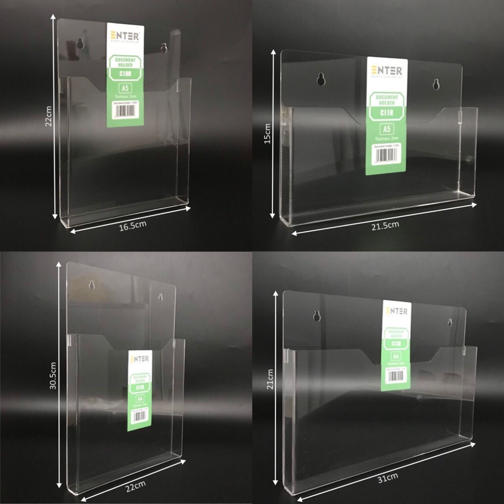 Kệ mica nhiều giấy treo tường Enter để bàn là sản phẩm làm từ Mica Đài Loan, được thiết kế để trưng bày các sản phẩm, đồ trang trí, sách, hình ảnh, hoặc các tờ checklist, tờ rơi cần lấy ra thường xuyên. Chúng giúp tạo ra một góc trưng bày ấn tượng và góp phần tăng cường sự hấp dẫn của không gian.