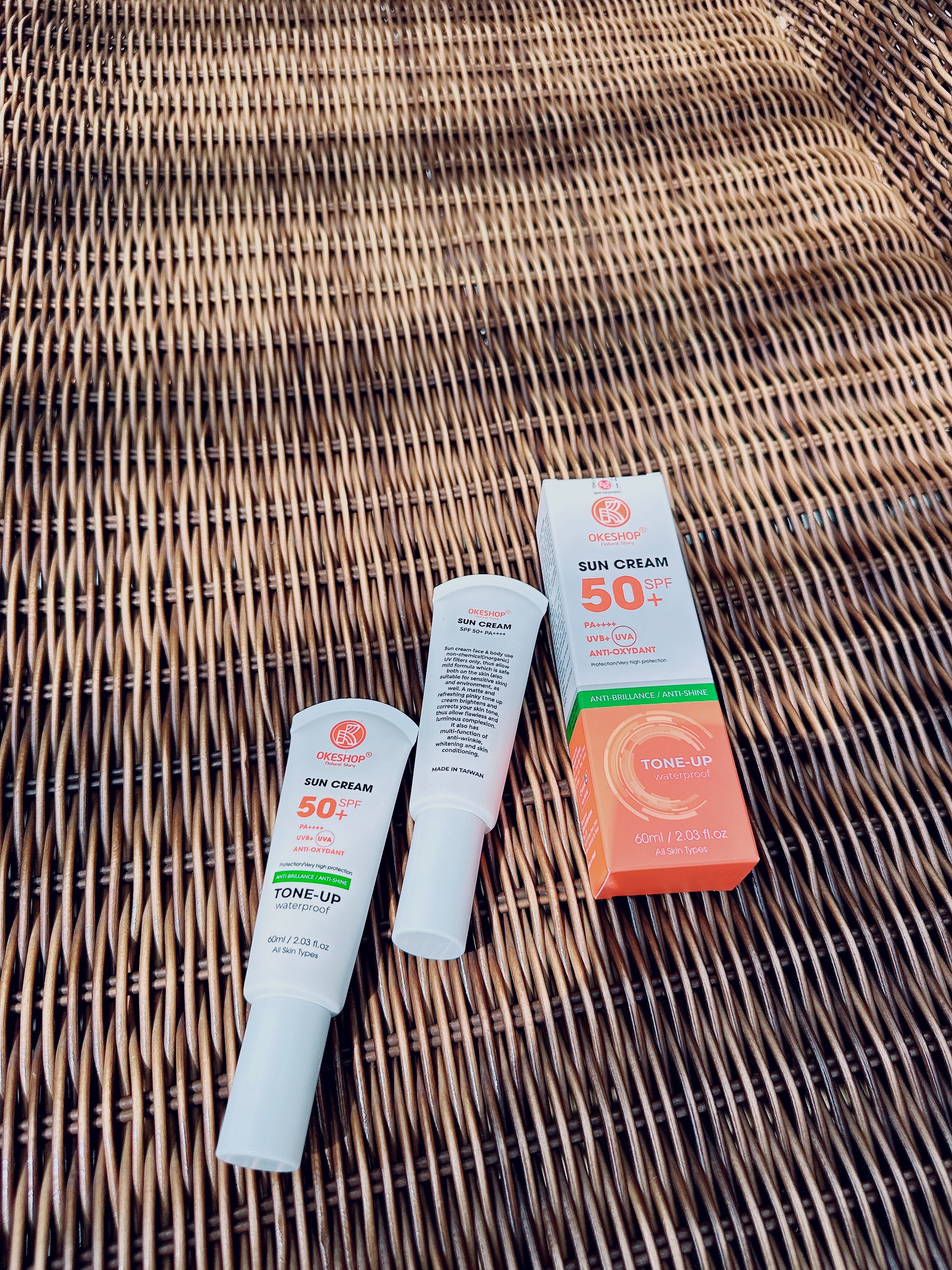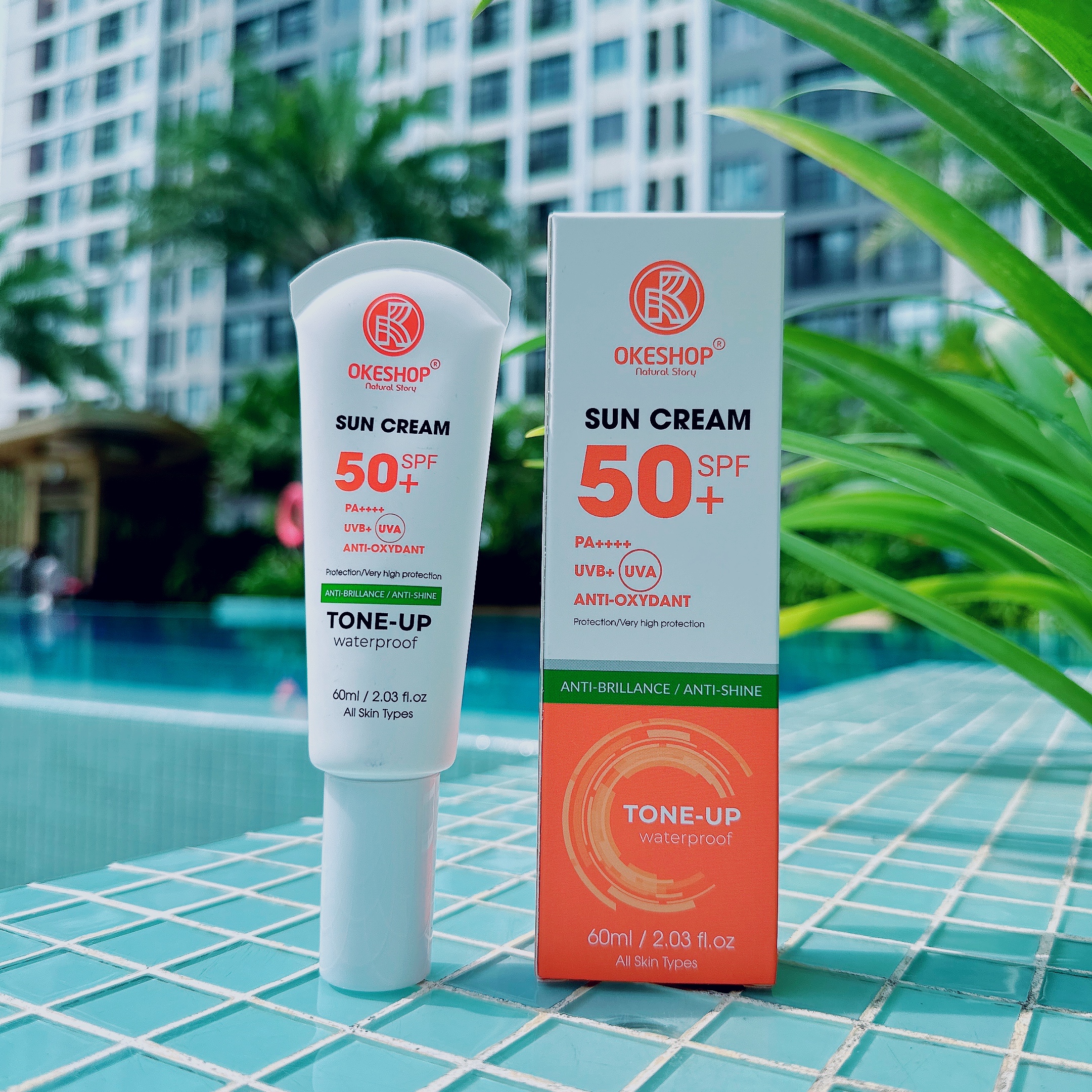 SUN CREAM OKESHOP SPF 50+ PA++++ Anti-oxydant 60ml giúp ngăn chặn 99% tia UV với chỉ số chống nắng cao SPF50+ PA++++ chống được tối đa tia UVA/UVB ngay cả khi bạn không trang bị cho mình đầy đủ áo, khẩu trang khi ra ngoài. OKESHOP SPF 50+ PA++++ Anti-oxydant 60ml giúp bảo vệ làn da của bạn an toàn dưới ánh nắng mặt trời mà vẫn dịu nhẹ, không gây hại cho da.