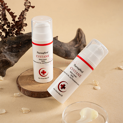 Kem dưỡng làm sáng da Pharmaform Cystane Mela Cream Thành phần chính: 5% Cysteamine, 3% Tranexamic Acid, 5% Niacinamide, Sodium Hyaluronate, Dipotassium Glycyrrhi Công dụng: Hỗ trợ làm sáng và đều màu da, cải thiện mảng sắc tố, da xỉn màu Hướng dẫn sử dụng: