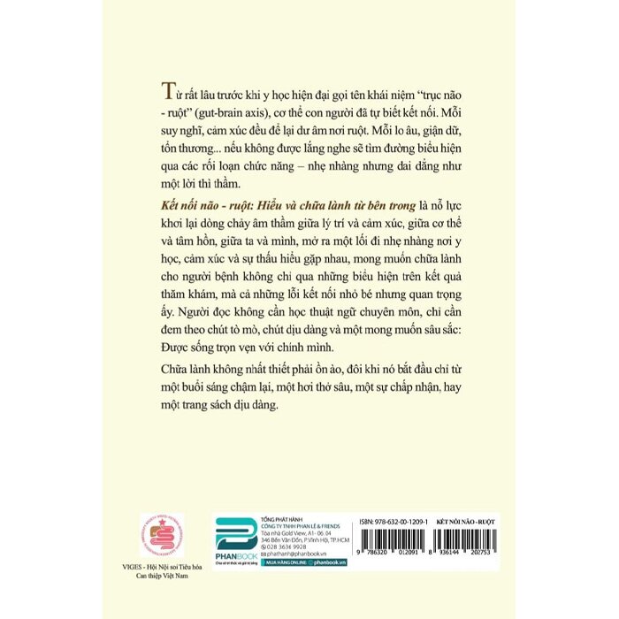 "Kết nối não - ruột: Hiểu và chữa lành từ bên trong" là nỗ lực khơi lại dòng chảy âm thầm giữa lý trí và cảm xúc, giữa cơ thể và tâm hồn, giữa ta và mình, mở ra một lối đi nhẹ nhàng nơi y học, cảm xúc và sự thấu hiểu gặp nhau, mong muốn chữa lành cho người bệnh không chỉ qua những biểu hiện trên kết quả thăm khám, mà cả những lỗi kết nối nhỏ bé nhưng quan trọng ấy. Người đọc không cần học thuật ngữ chuyên môn, chỉ cần đem theo chút tò mò, chút dịu dàng và một mong muốn sâu sắc: Được sống trọn vẹn với chính mình.