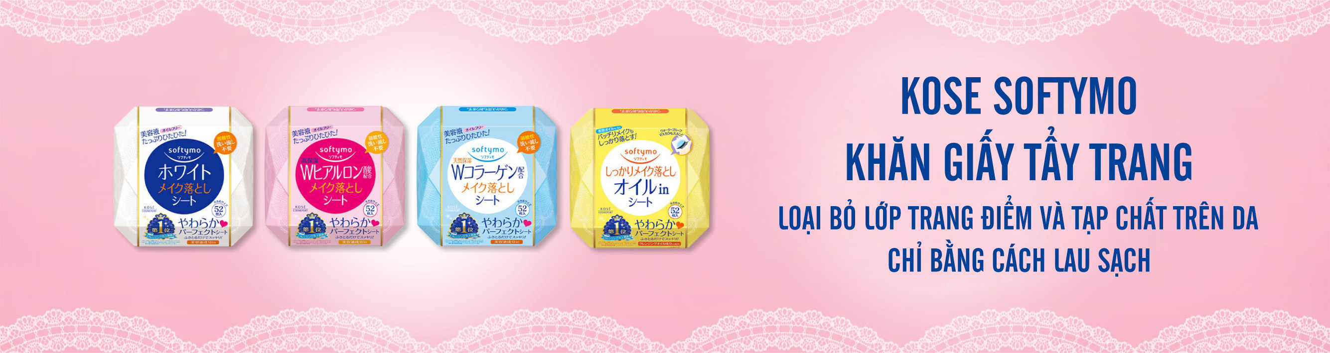 Khăn Giấy Tẩy Trang Dưỡng Trắng Mịn Da Kosé Softymo White Cleansing Sheet W (Gói Refill 52 miếng) Xuất xứ: Nhật Bản Sản phẩm được tẩm sẵn dung dịch tẩy trang trong chất liệu cotton kết hợp bởi ba loại vải sợi pha trộn .Với các thành phần làm sạch dịu nhẹ nguồn gốc từ thực vật hữu cơ như Vitamin C, vỏ cây Quilla, Al-Ethanol. Giúp nhẹ nhàng & nhanh chóng hòa tan, loại bỏ các lớp trang điểm bụi bẩn trên da, cũng như các dầu thừa và lớp sừng già cỗi. Chứa nhiều dưỡng chất cho làn da sạch, mịn màng, trong trẻo. Ngoài ra dẫn xuất vitamin C giúp da trở nên đều màu sáng hồng. Cách dùng: Dùng 2-3 miếng khăn giấy lau khắp bề mặt da theo hướng từ dưới lên, từ trong ra ngoài, đến khi nào bề mặt khăn giấy không còn thấy phấn hoặc bụi bẩn thì khi đó việc tẩy trang mới hoàn tất Không cần rửa mặt lại. Đóng nắp kỹ sau khi sử dụng. Bảo Quản: Tránh để nơi quá lạnh và ánh nắng trực tiếp vào sản phẩm, để xa tầm tay trẻ em khi không sử dụng. Lưu Ý: Khi dùng nếu có biểu hiện như mẩn ngứa hay có triệu chứng gì bất thường thì ngừng không được sử dụng