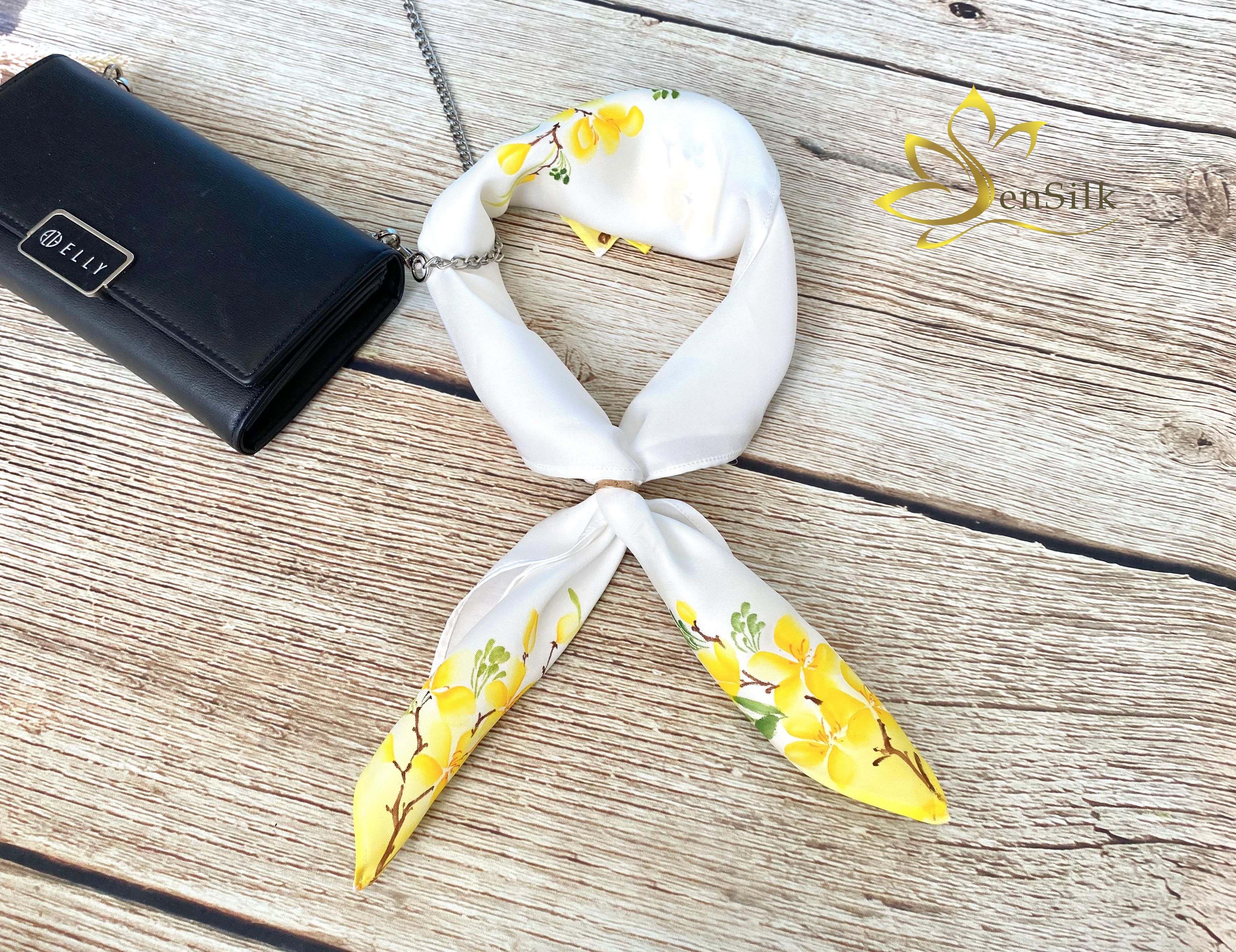 Khăn Lụa Thắt Nơ Cổ Vẽ Tay Mai Vàng SenSilk
