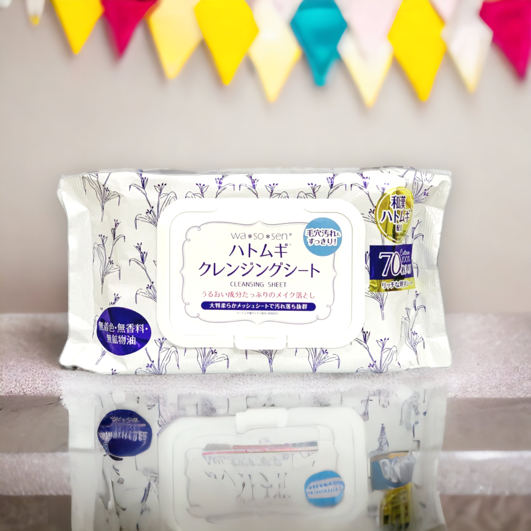 ✨Khăn Ướt Tẩy Trang Chiết Xuất Hạt Ý Dĩ Kumano Hatomugi Wasosen Cleansing Sheet (70 tờ)
