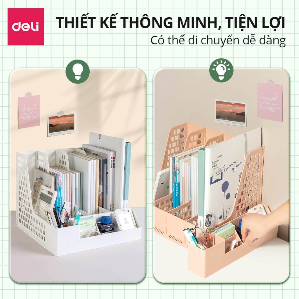 Giá Kệ Đựng Tài Liệu Deli 4 Ngăn - Kệ Hồ Sơ Văn Phòng, Giá Sách Vở Tiện Lợi Màu Pastel