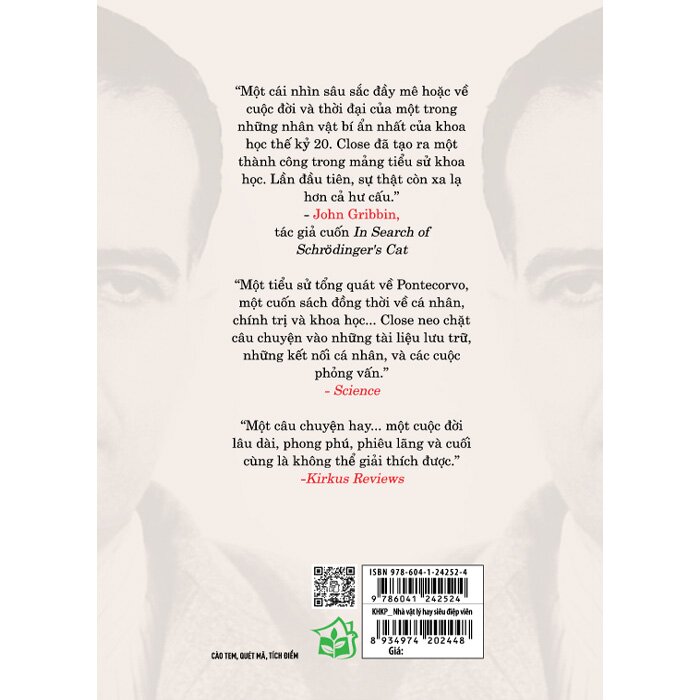 Trong Nhà vật lý hay điệp viên, Frank Close cung cấp cho độc giả những điều từ trước đến nay chưa được kể về cuộc sống của Pontecorvo, dựa trên những tài liệu từ gia đình và bạn bè của Pontecorvo và các nhà khoa học Nga mà sau này ông làm việc. Cuốn sách là một góc nhìn chi tiết về cuộc sống của Pontecorvo trong sự hấp dẫn của một câu chuyện về gián điệp. Một điệp viên, một vụ bắt cóc, cuốn sách này là lịch sử của vật lý hạt nhân với tất cả sự bí ẩn của nó.