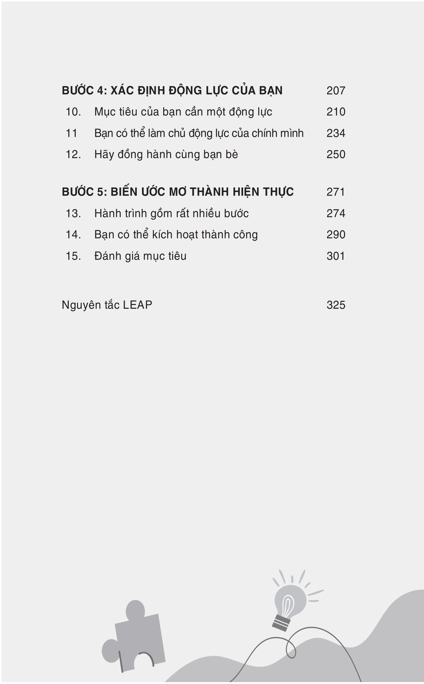 Cuốn sách này là kết quả của cả một quá trình học tập, sinh hoạt và giảng dạy của tác giả. Dựa trên kinh nghiệm thực tế qua nhiều thập kỷ cùng những nghiên cứu mới nhất hiện có về việc hoàn thành mục tiêu và thành tựu của con người, cuốn sách sẽ giúp bạn tìm ra sự thông suốt, khích lệ lòng can đảm và thúc đẩy sự cam kết bạn cần để đạt được những mục tiêu cá nhân và nghề nghiệp quan trọng nhất.