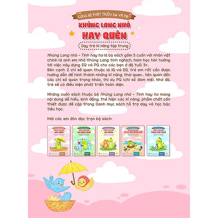 Cầm bộ sách được minh họa đẹp mắt trên tay, hẳn các em nhỏ sẽ tự hỏi hằng ngày bạn Khủng Long làm gì, chơi gì, bạn ấy có những đức tính gì, cần khắc phục khuyết điểm ra sao. Trong bộ sách Khủng Long nhỏ - Tính hay ho, chúng ta sẽ gặp một cậu chàng Khủng Long với “kha khá” đức tính tốt: chăm chỉ, nhiệt tình, hòa đồng, yêu thích thể thao… nhưng cũng còn những điểm cần điều chỉnh, chẳng hạn bạn ấy còn lơ đễnh, thiếu tập trung nên có lúc quên mất việc quan trọng: “Khủng Long nhỏ reo lên vui sướng. Cậu thích thú quan sát con ếch màu xanh đang nhảy nhót trên nền gạch và quên mất ba đang đứng đợi mình ở bến xe buýt” (trích Khủng Long nhỏ hay quên); hoặc chưa thuộc được lời thoại lúc tập kịch: “Mồm bà to vì… vì… Ôi, tớ lại quên lời thoại rồi! Xin lỗi các bạn!” (trích Khủng Long nhỏ lạc quan), hoặc có lúc bạn ấy cũng không tự tin vào chính khả năng của mình “Có phải là con chơi bóng thật tệ không ba?” (Khủng Long nhỏ thích thể thao)… Ôi chao, hóa ra Khủng Long nhỏ cũng gặp khó khăn và thiếu tự tin như tất cả chúng mình đấy thôi!